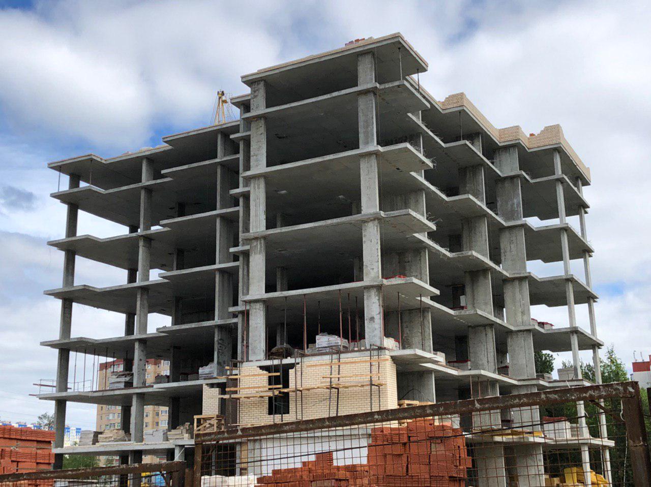 Произведена заливка бетоном опалубки арматурного каркаса монолитных конструкций (колонн) на 6 этаже (ближняя секция).