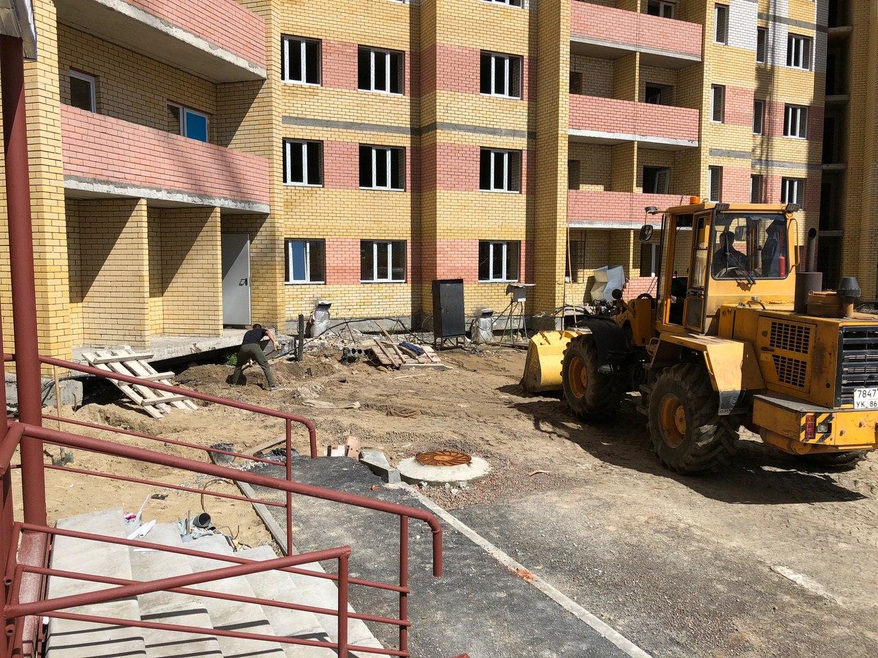На строительной площадке находятся ориентировочно 20-30 человек. Ведутся работы по остеклению 5 и 6 секции, по кладке 12 этажа 8 секции. Внутри 3 секции 2 электрика ведут электротехнические работы. В 1 секции ведутся чистовые работы по покраске мест общего пользования.