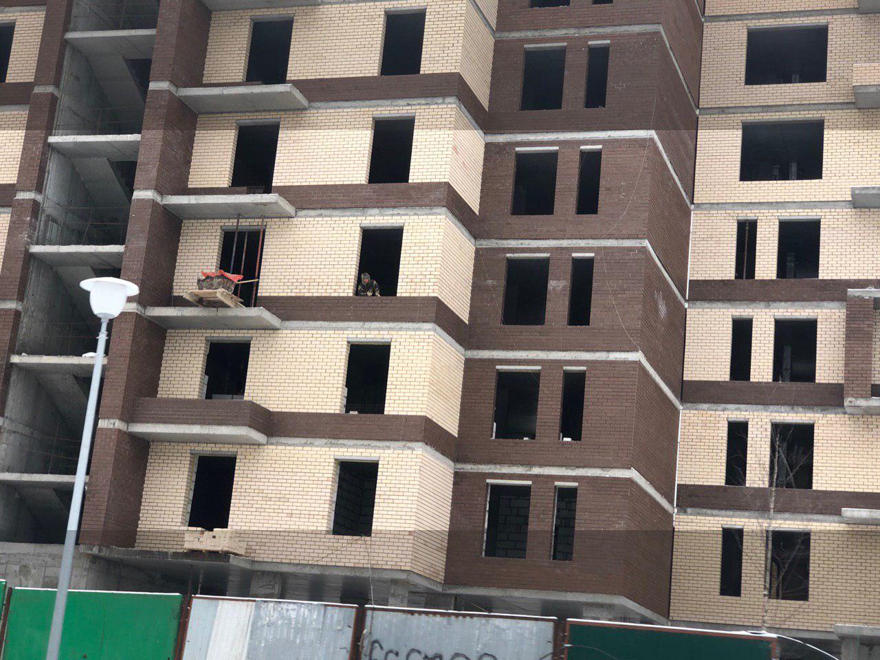 Ведутся работы по укладке ограждающих конструкций в 7 этажной секции.