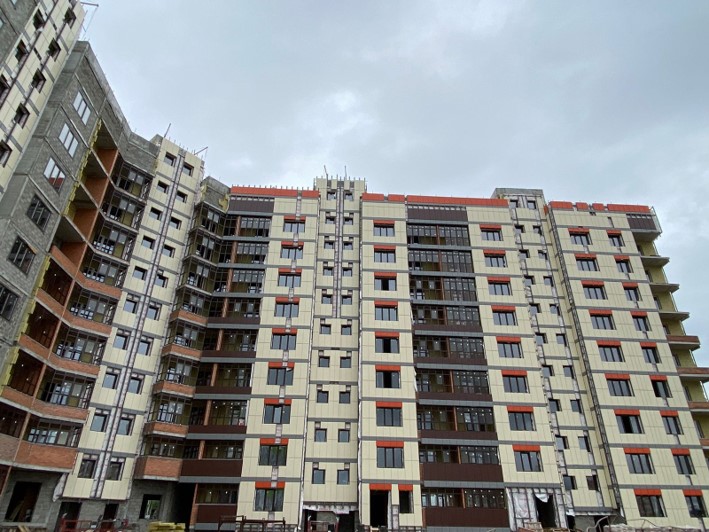 На строительной площадке ведутся строительно-монтажные работы.
