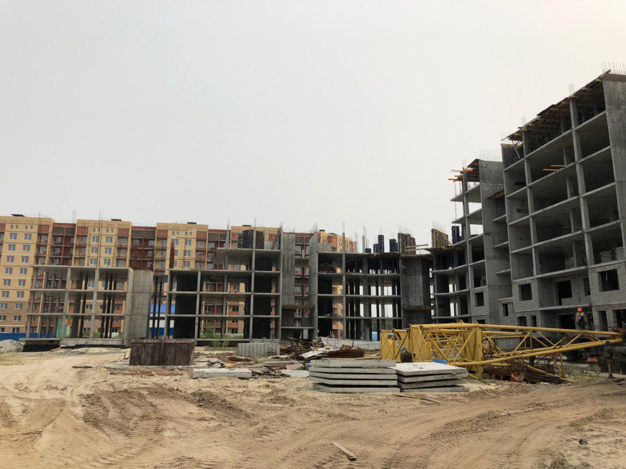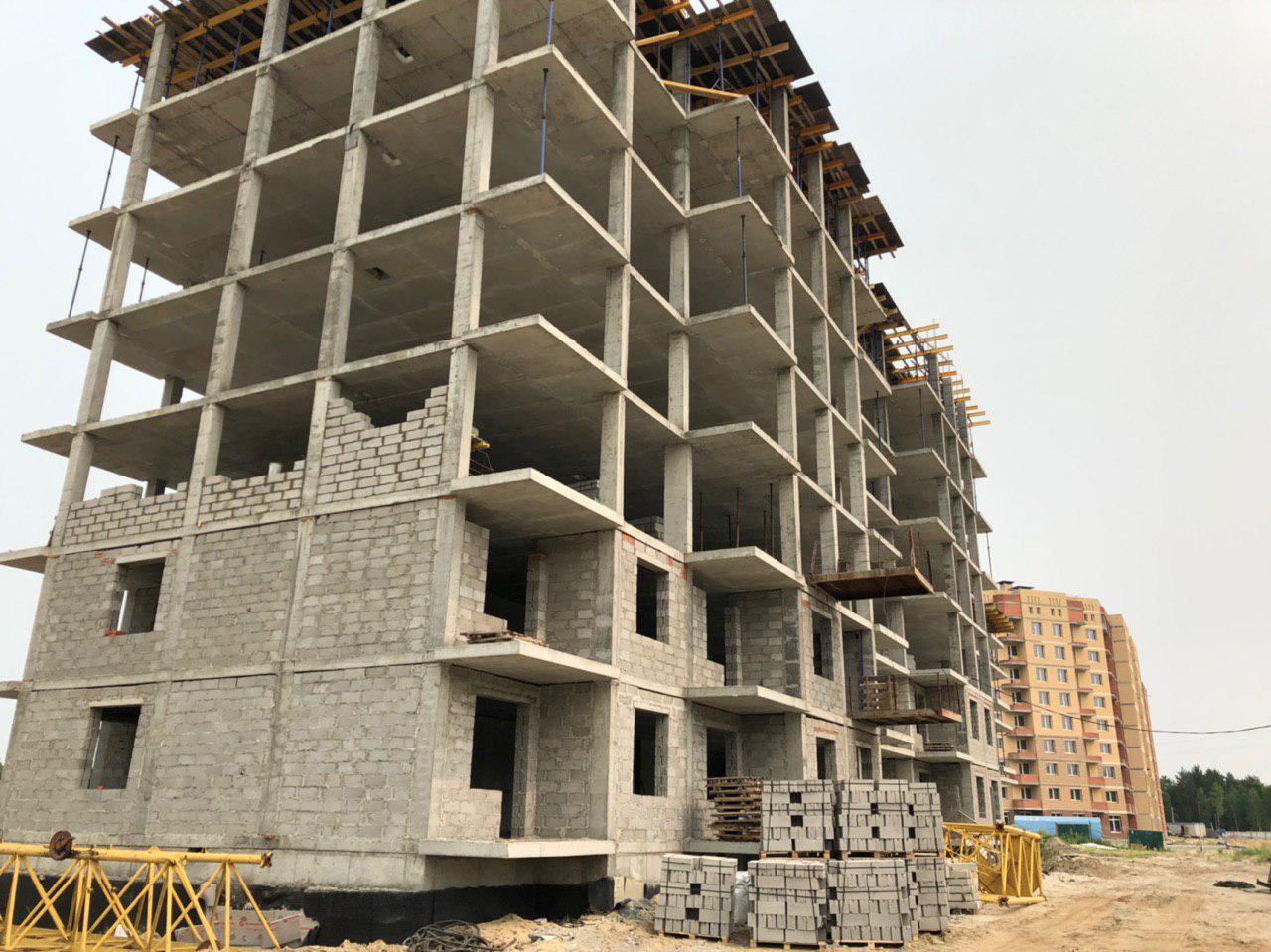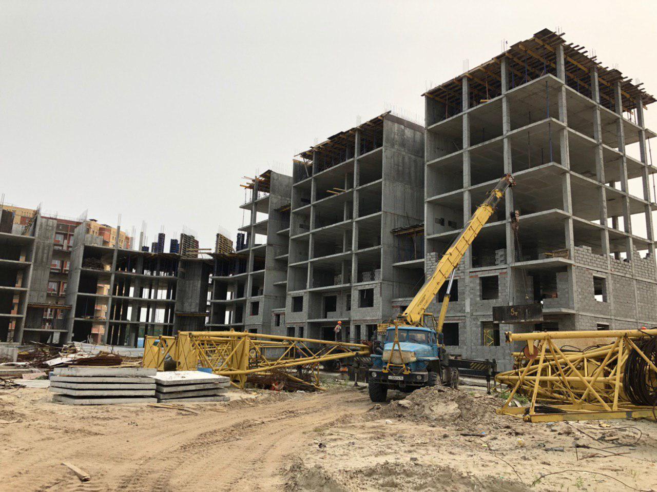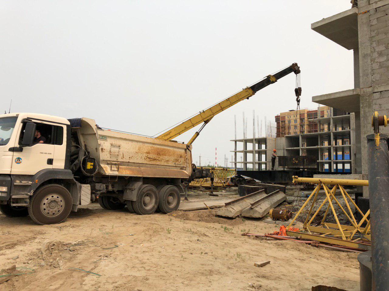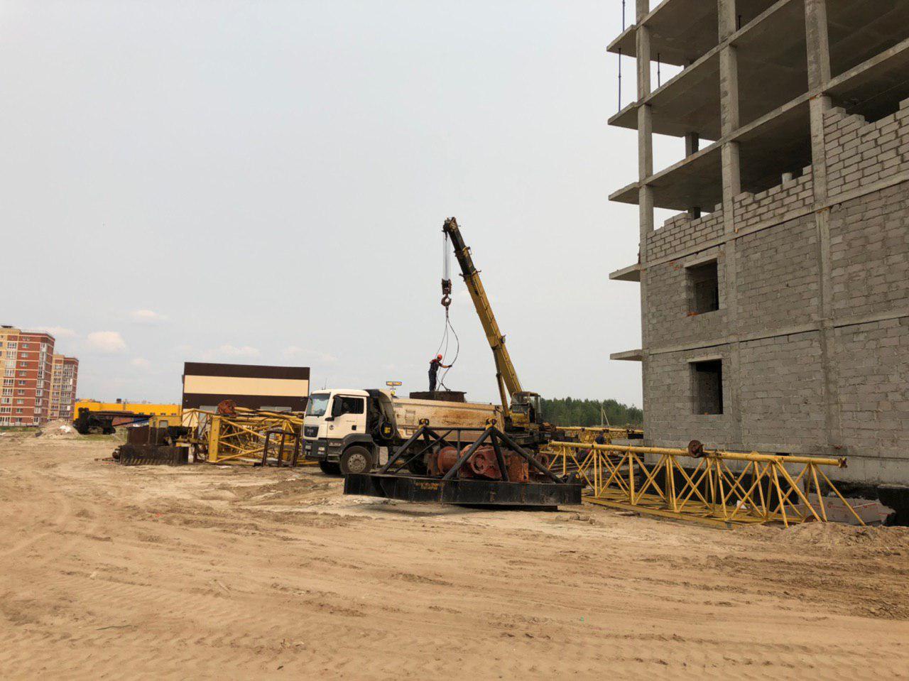 Проводится укладка ограждающих конструкций первого и второго этажа силами 2-4 человек, работает автокран. Ведутся работы по монтажу башенного крана.