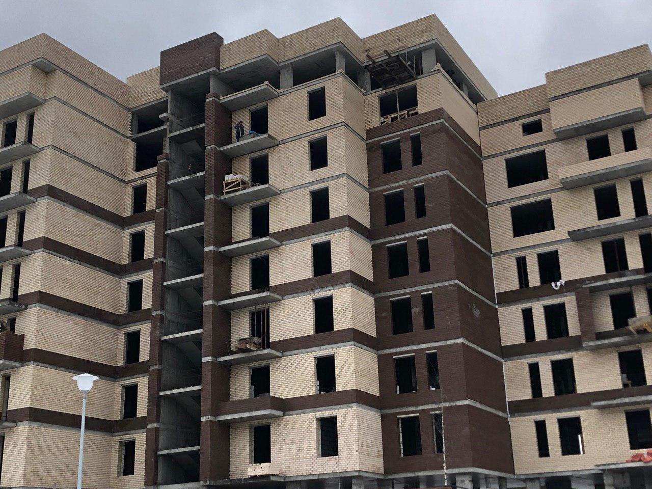 Ведутся работы по укладке ограждающих конструкций в 7 этажной секции.