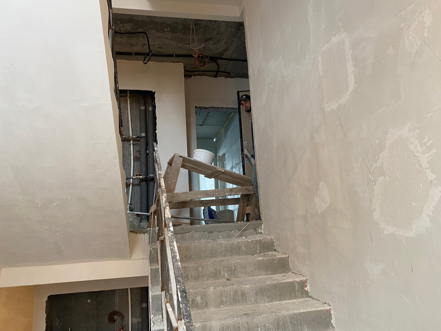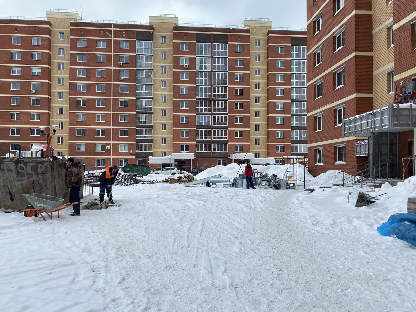 На объекте окончен ремонт ливневой и бытовой канализаций, системы ХГВС. Произведен процесс опресовки ХГВС, работают плиточники, выполняются электромонтажные работы, продолжаются отделочные и фасадные работы, осуществляется монтаж лоджий и лифтов.