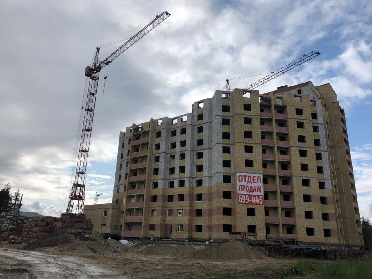 Ведется кладка ограждающих конструкций многоквартирного жилого дома и перегородок. Ведутся работы на кровле.