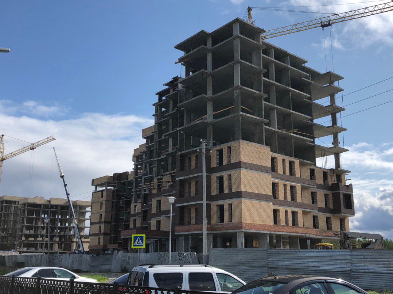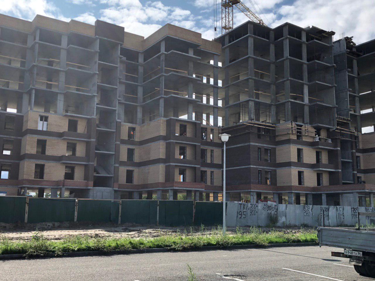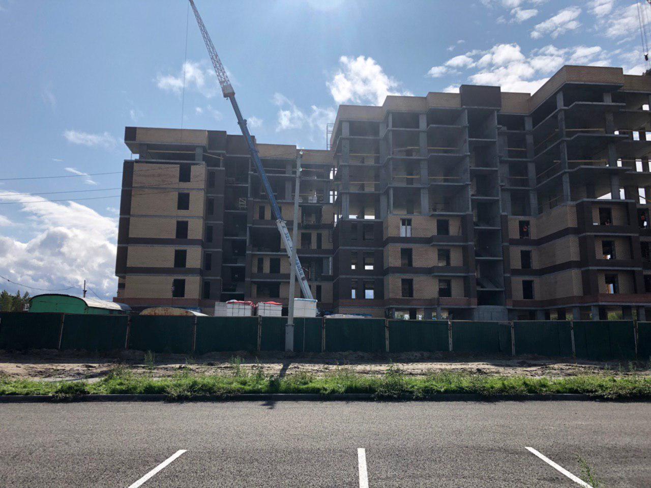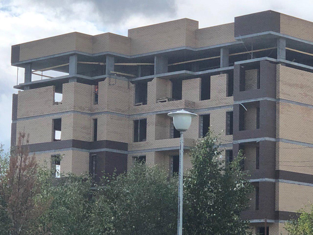 Ведутся работы по укладке ограждающих конструкций на 1,2,3,4,5 этажах из кирпича 6,7,8 этажных секций.