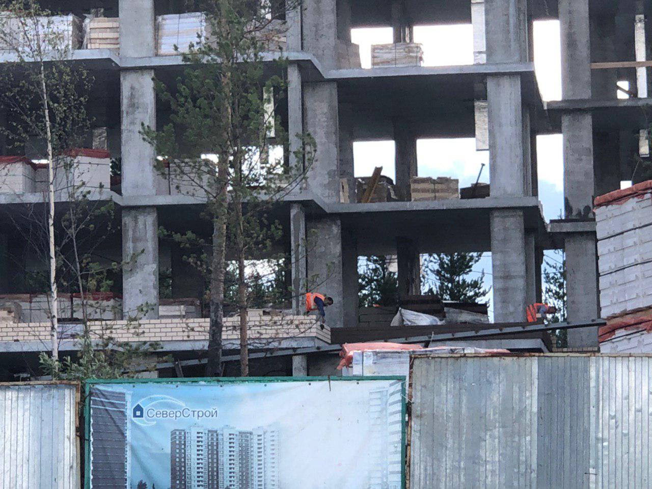 Ведутся работы по укладке ограждающих конструкций 2 этажа 6 этажной секции.