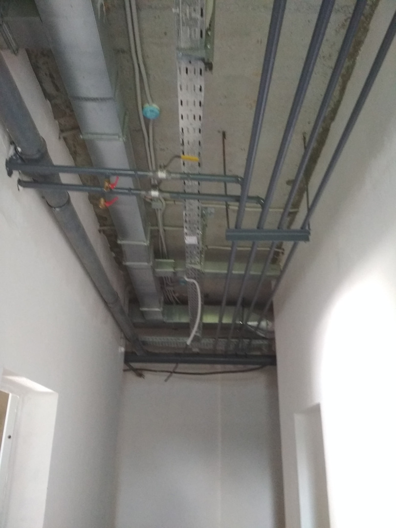 Продолжаются работы по отделке мест общего пользования, монтаж подвесных потолков на первых этажах, установка коробов под кондиционеры, работы устройству пандуса 7 подъезда.
