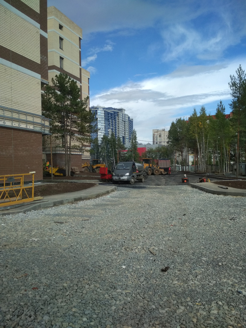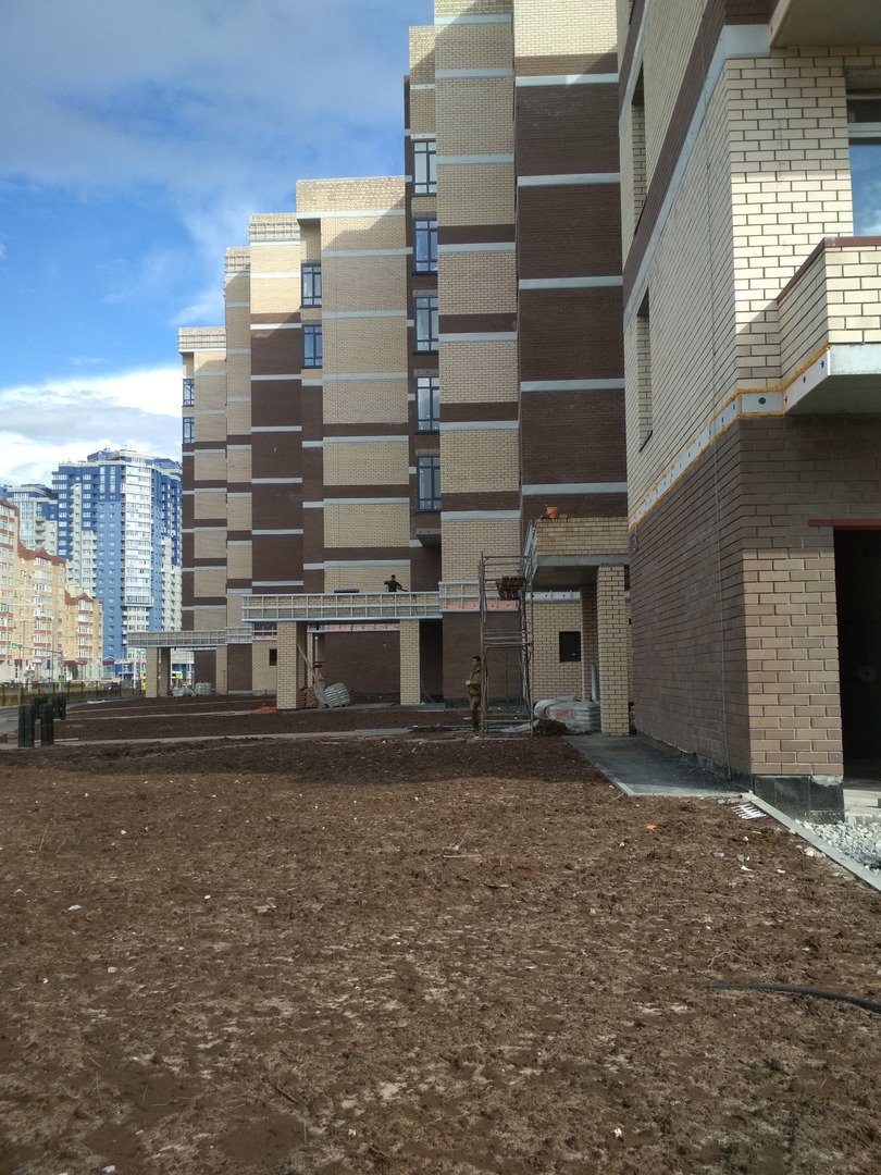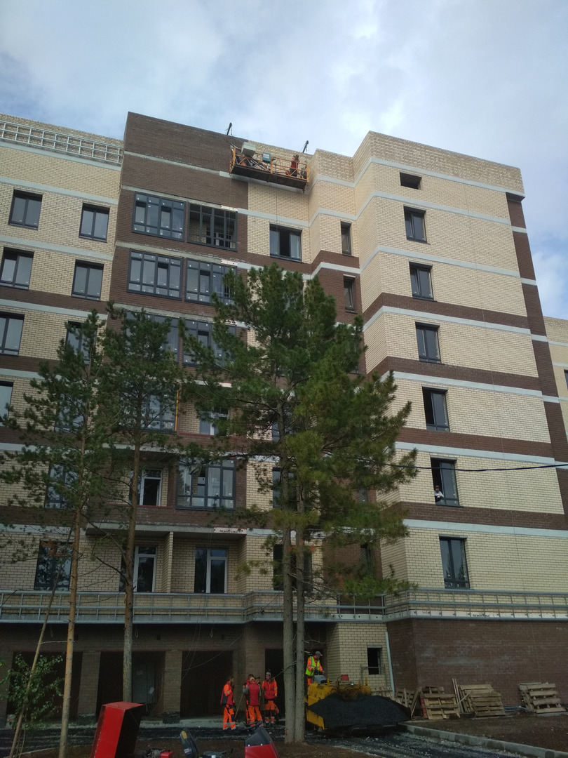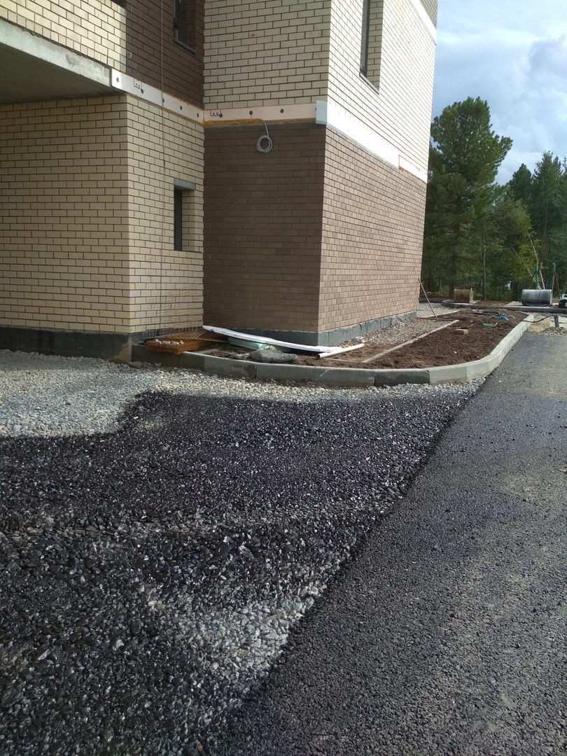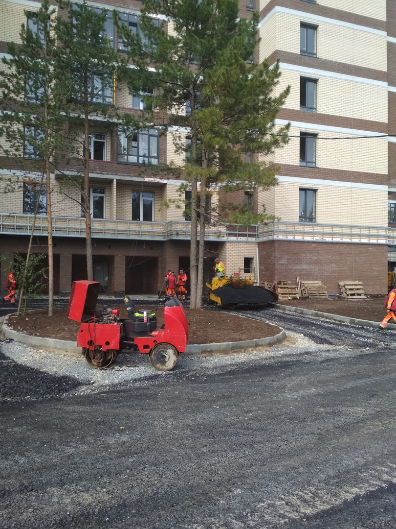 Производятся работы по работы по монтажу фасада, благоустройству территории, устройству подъездных путей (укладка асфальта).