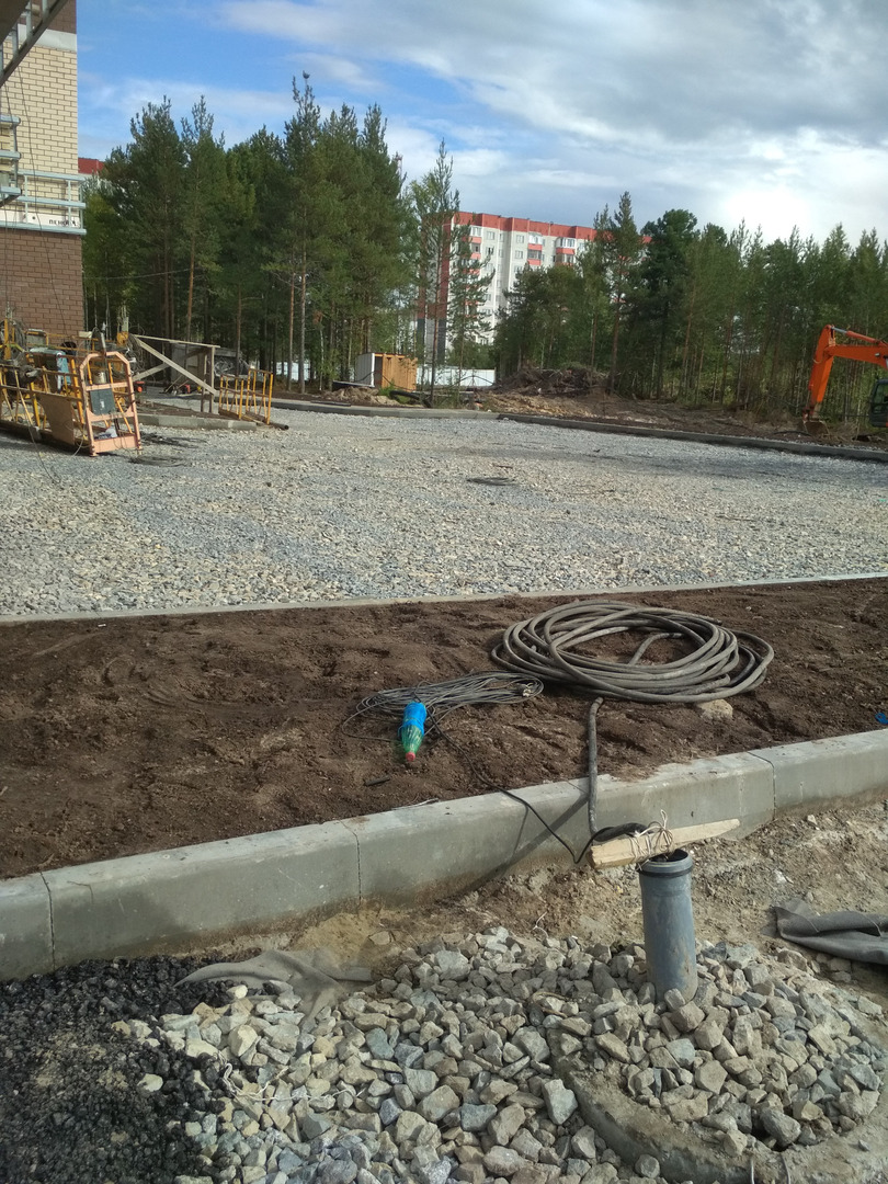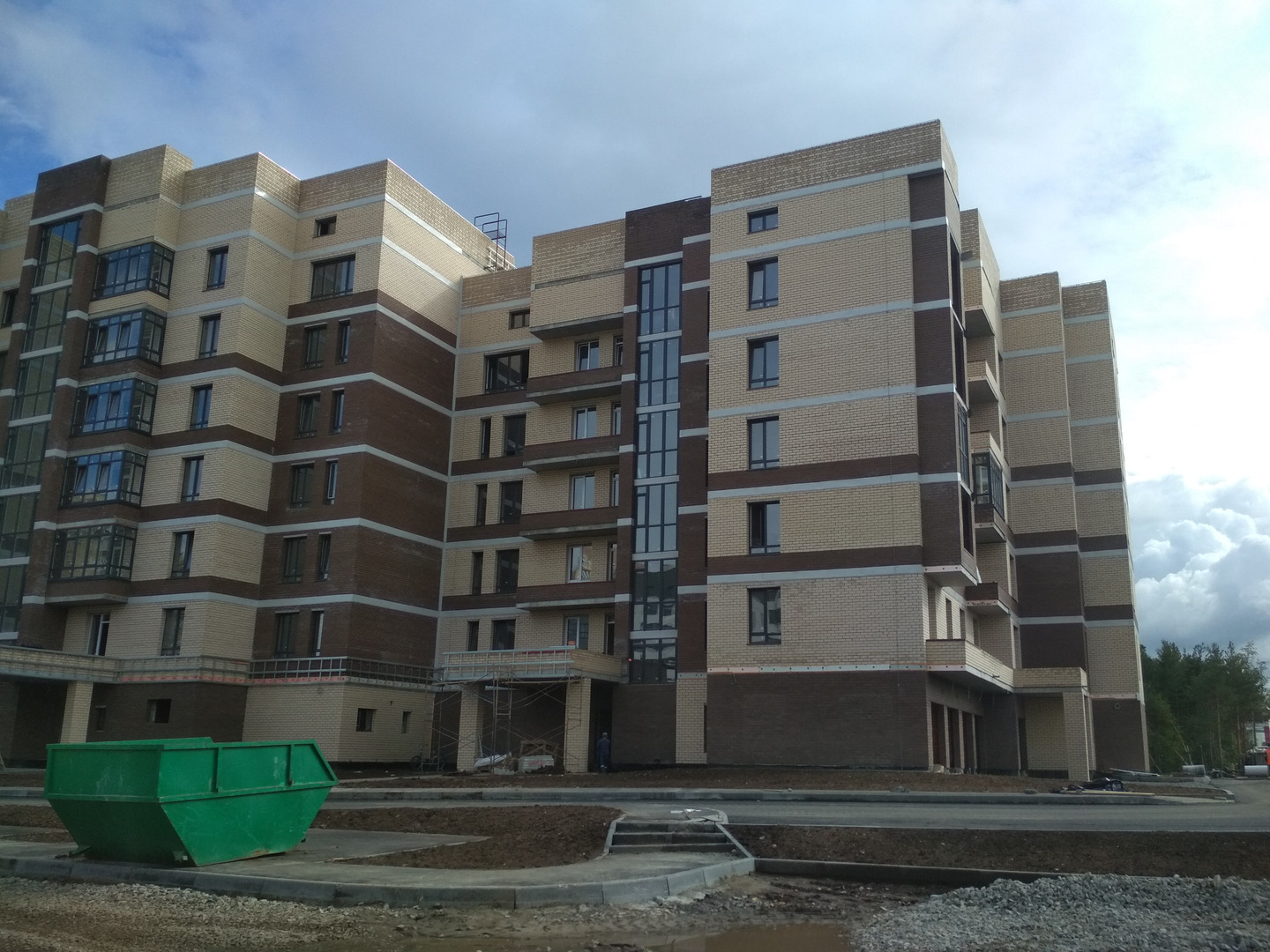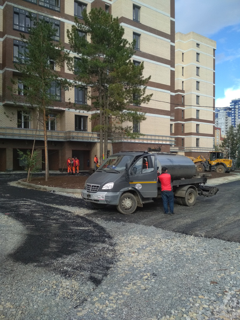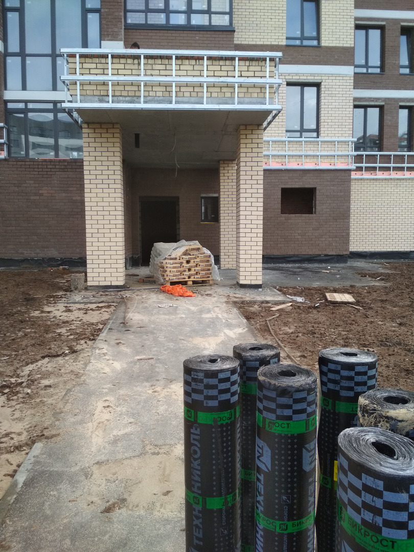 Производятся работы по работы по монтажу фасада, благоустройству территории, устройству подъездных путей (укладка асфальта).