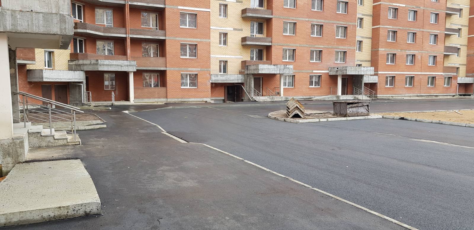 Проводятся работы по устройству кабельной линии наружного освещения. Выполняются внутренние сантехнические работы. Выполнены работы по асфальтированию проездов и тротуаров.