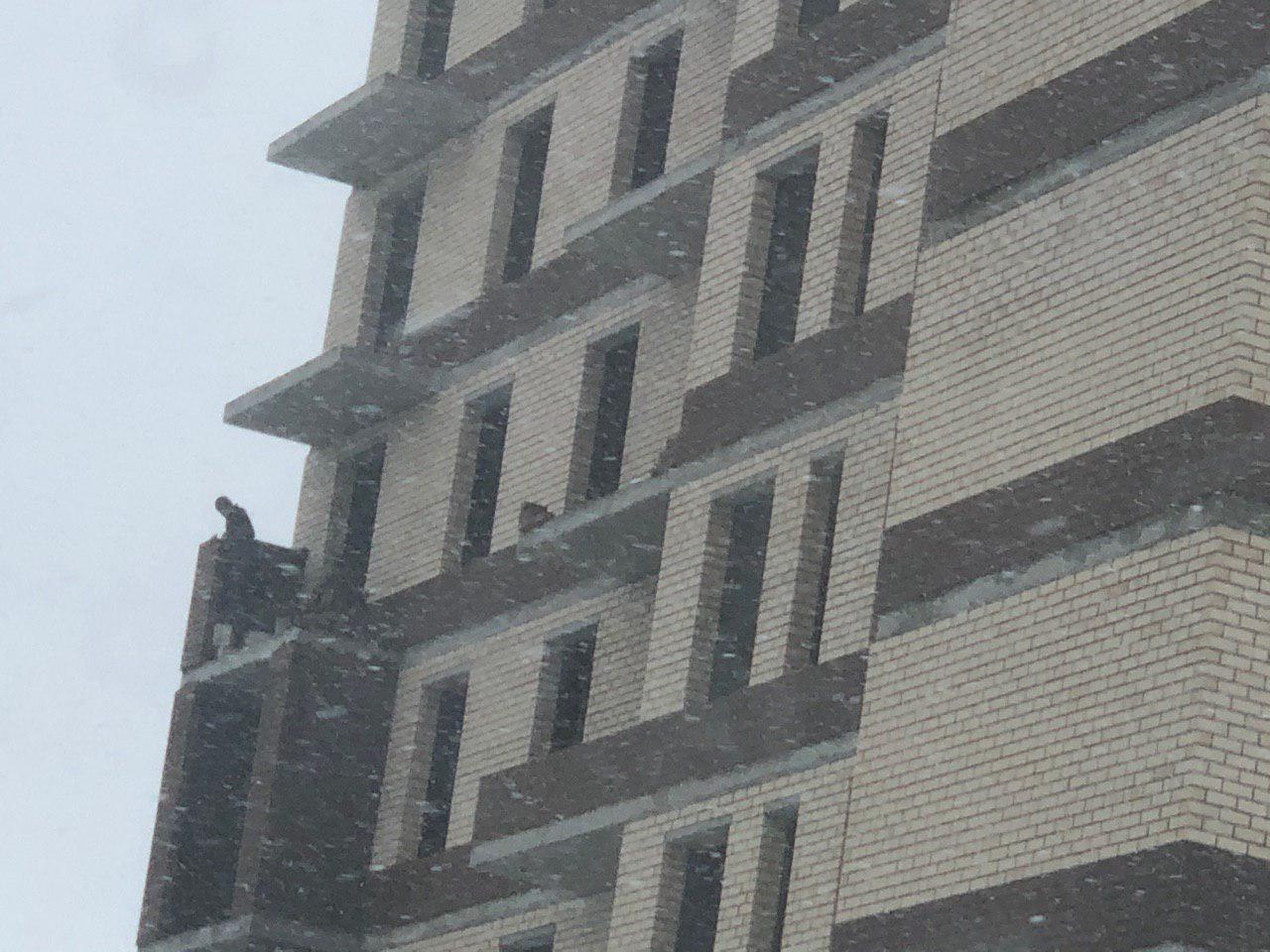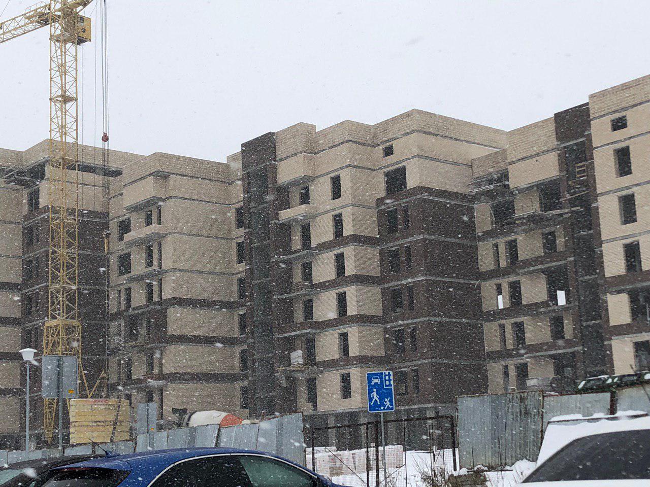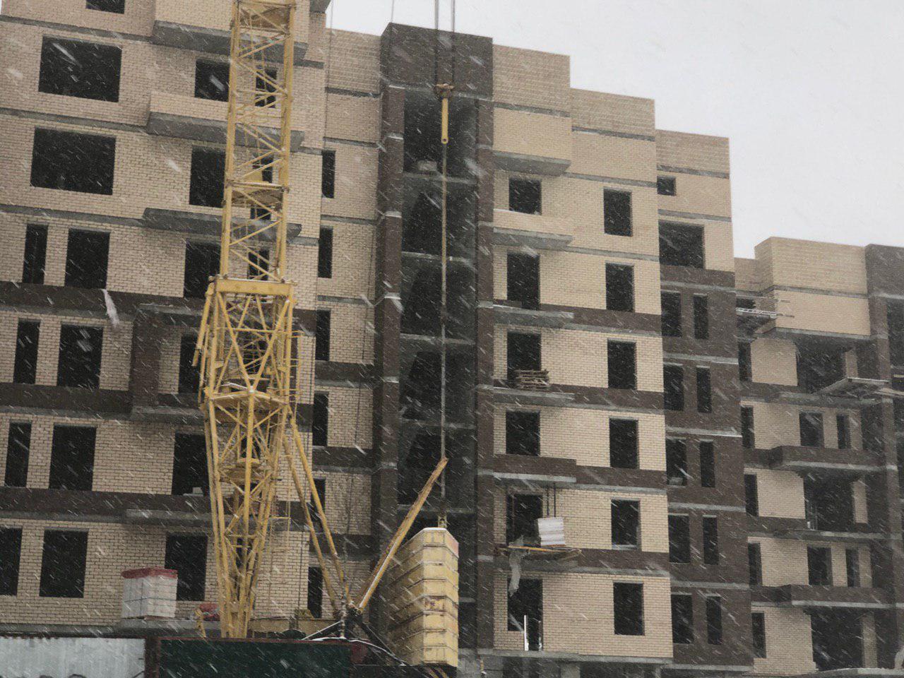 Производятся работы по укладке ограждающих конструкций 8 этажной секции.