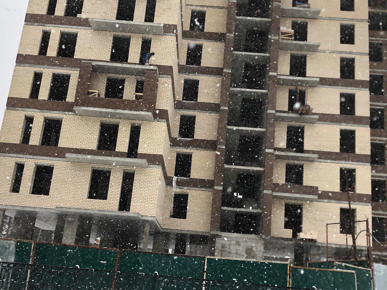 Ведутся работы по укладке ограждающих конструкций в 7 этажной секции.