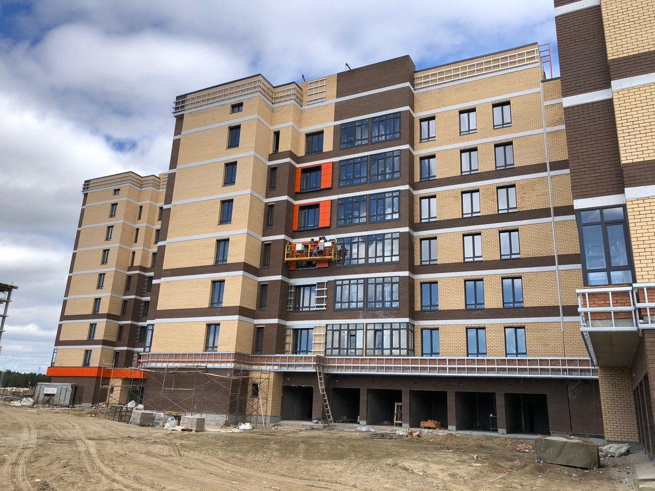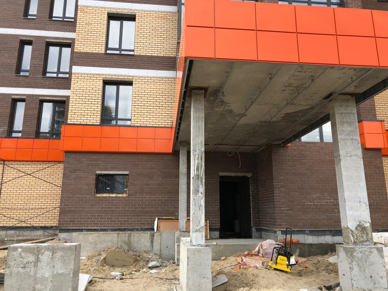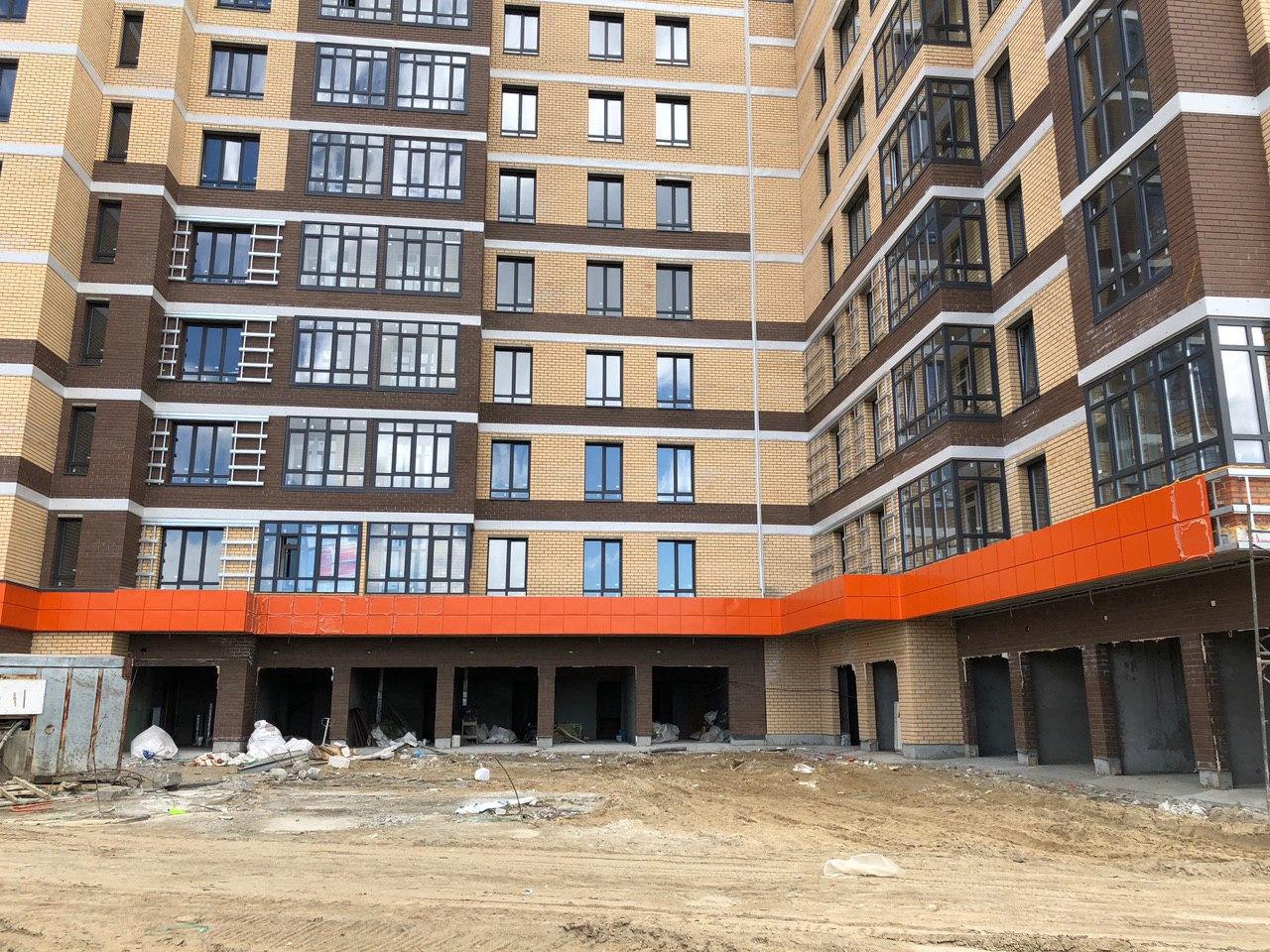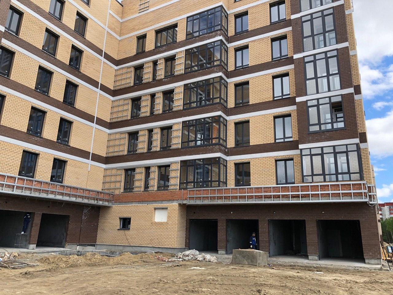 Строительство ведется в соответствии с утвержденным графиком СМР. Внутри помещений возведены перегородки, ведется работа по оштукатуриванию стен мест общего пользования, укладка плитки на пол в МОП первой, второй, третьей секции, установка дверей, покраска МОП первой, второй, третьей секции подготовка к благоустройству территории, монтаж внутреннего электроснабжения, монтаж внутреннего отопления. Завершаются работы по остеклению фасада. Ведутся работы по монтажу фасада.