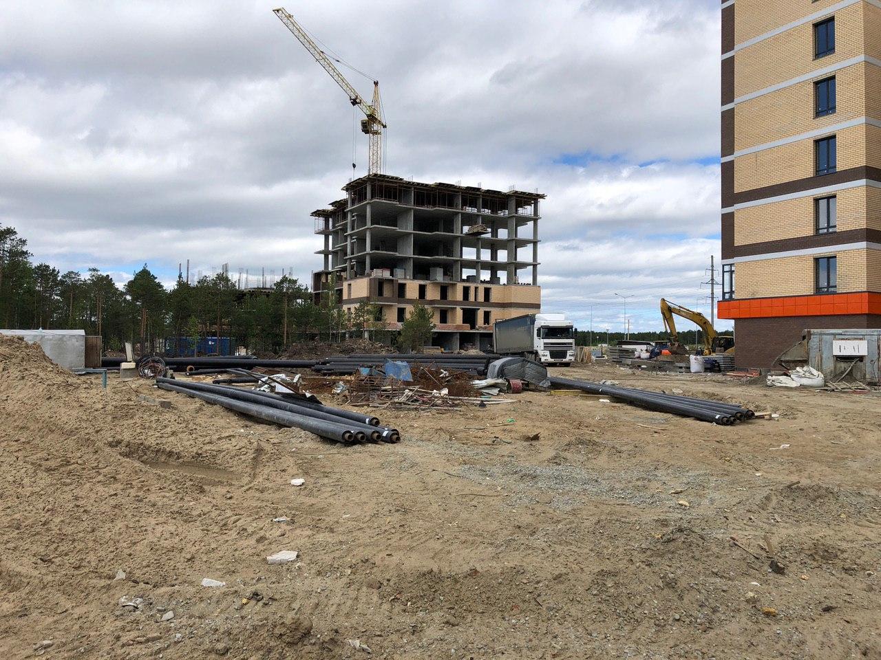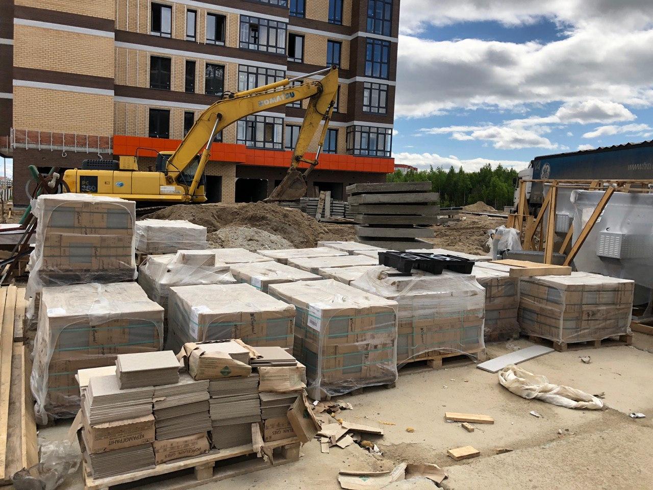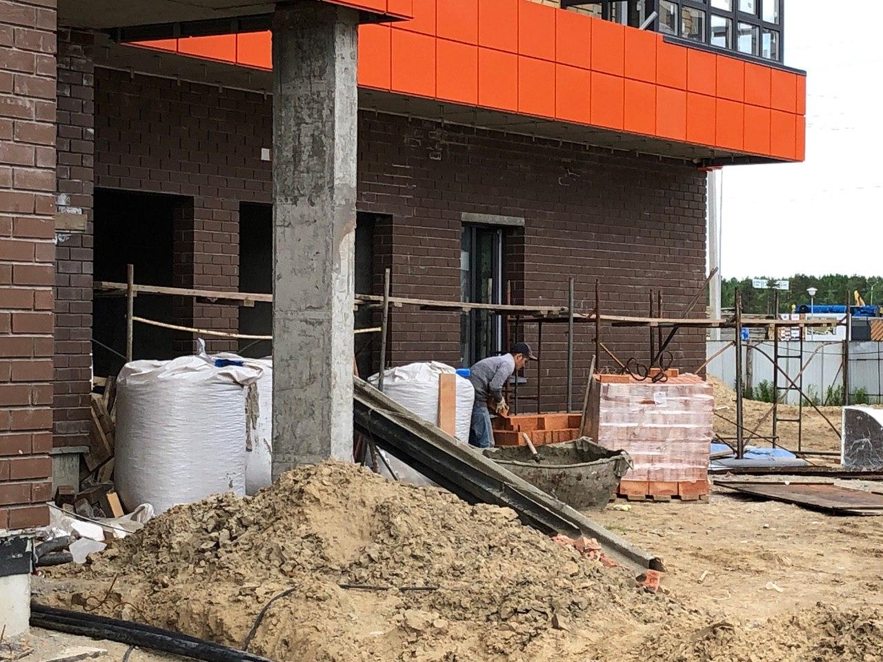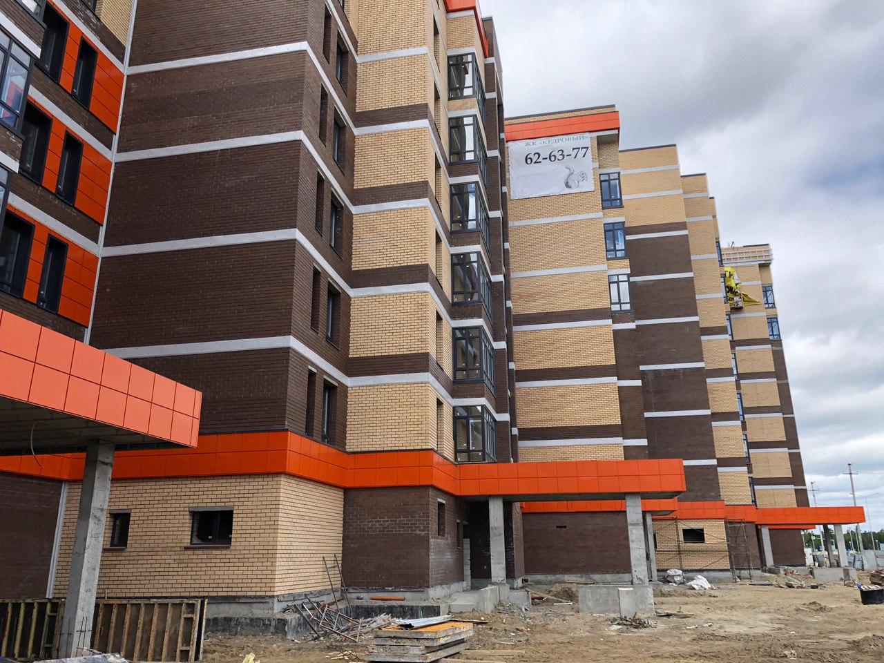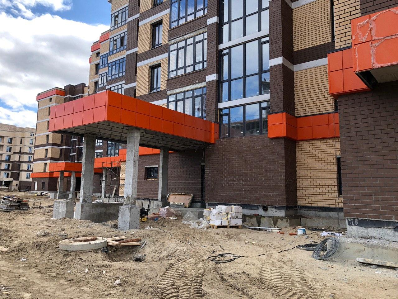 Строительство ведется в соответствии с утвержденным графиком СМР. Внутри помещений возведены перегородки, ведется работа по оштукатуриванию стен мест общего пользования, укладка плитки на пол в МОП первой, второй, третьей секции, установка дверей, покраска МОП первой, второй, третьей секции подготовка к благоустройству территории, монтаж внутреннего электроснабжения, монтаж внутреннего отопления. Завершаются работы по остеклению фасада. Ведутся работы по монтажу фасада.