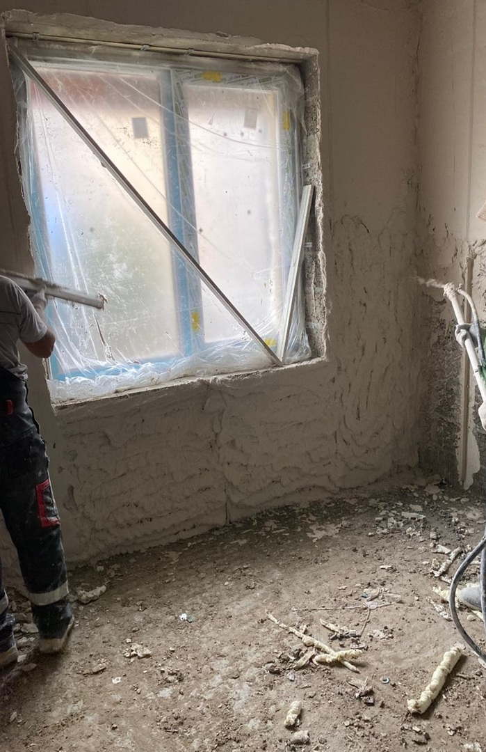 На строительной площадке ведутся строительно-монтажные работы.