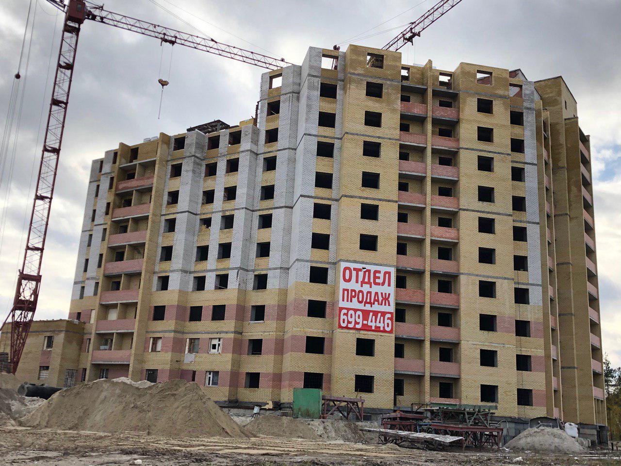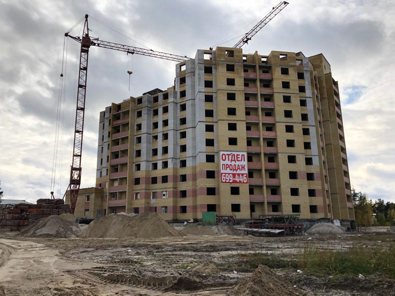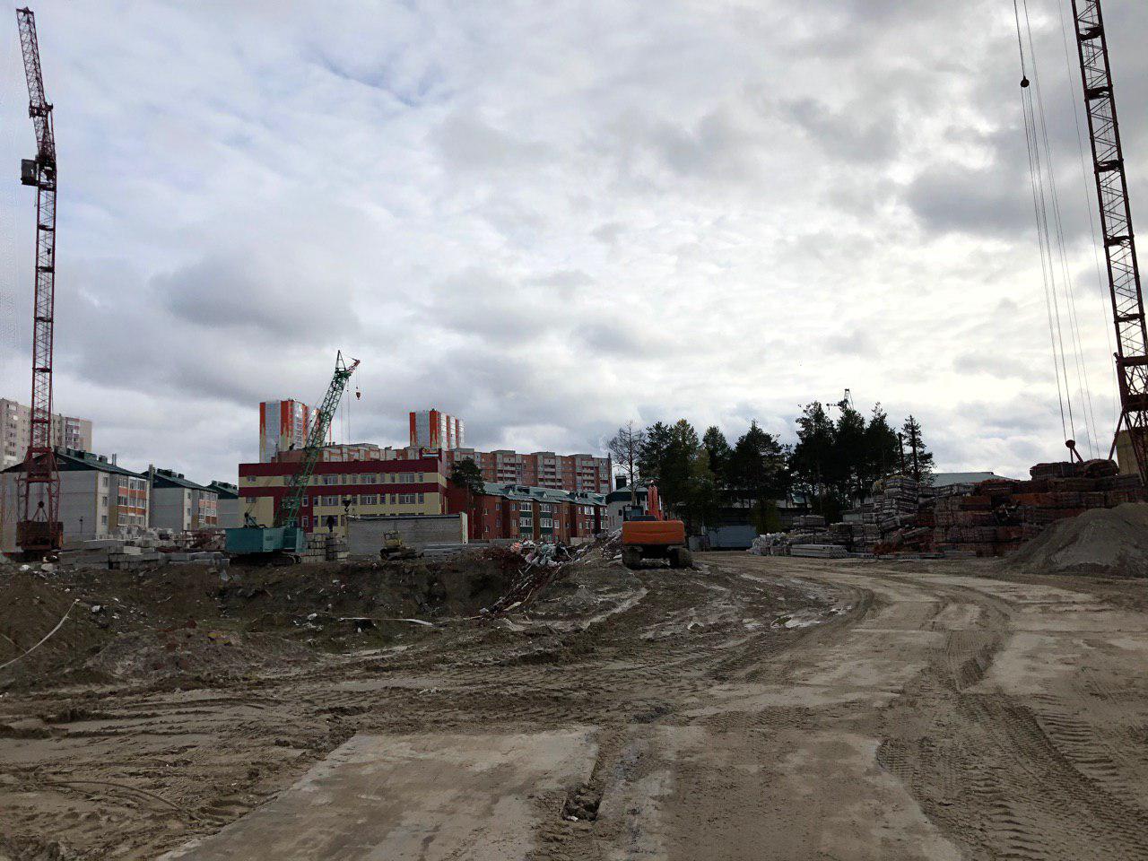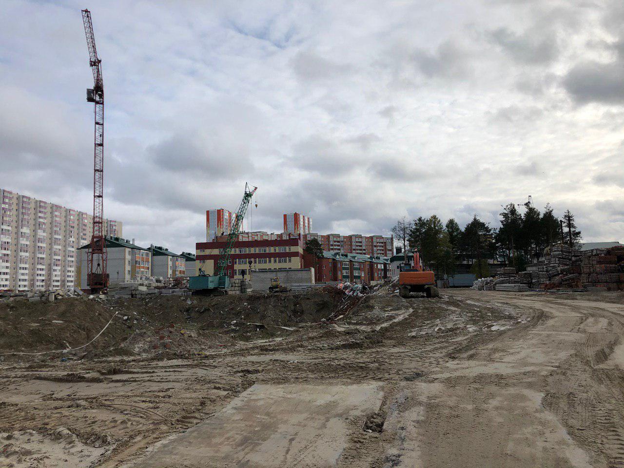 Ведется кладка ограждающих конструкций 9-го этажа секции 8 многоквартирного жилого дома и перегородок. Ведутся работы на кровле. Работают 2 кран, бульдозер.
