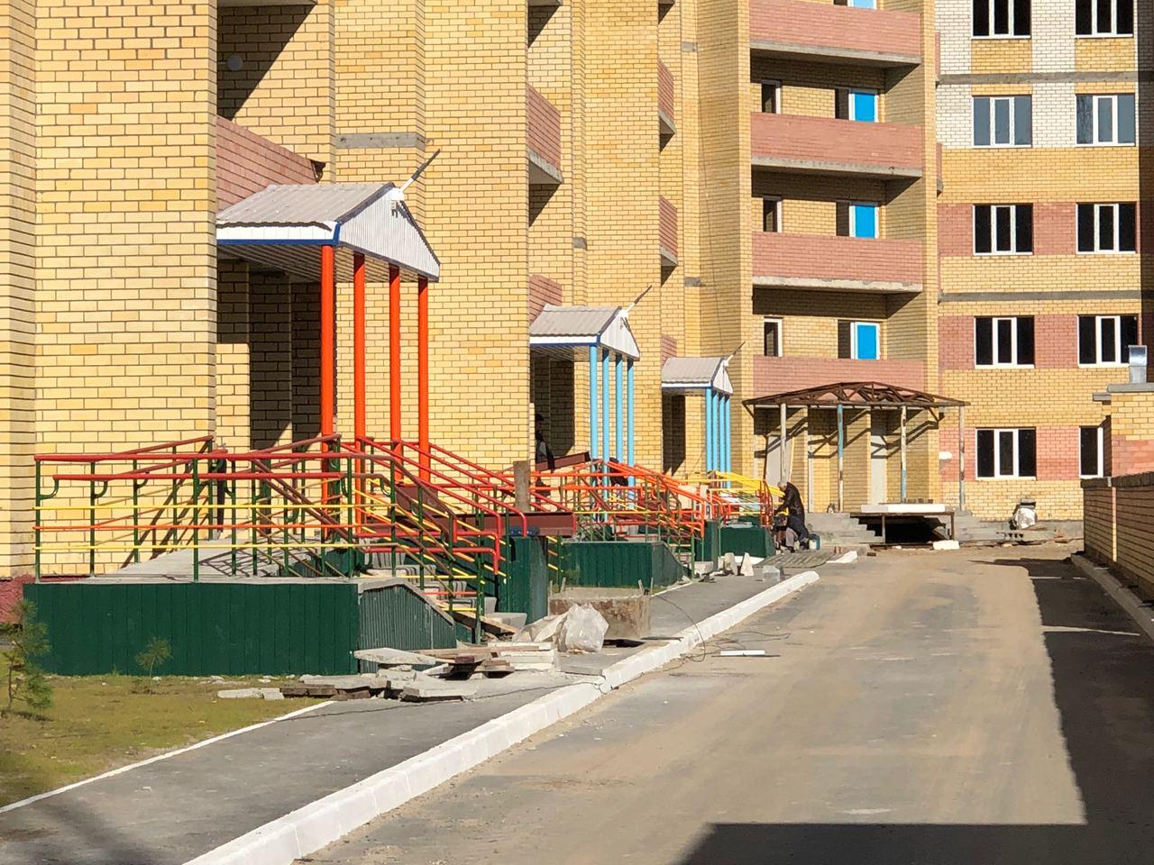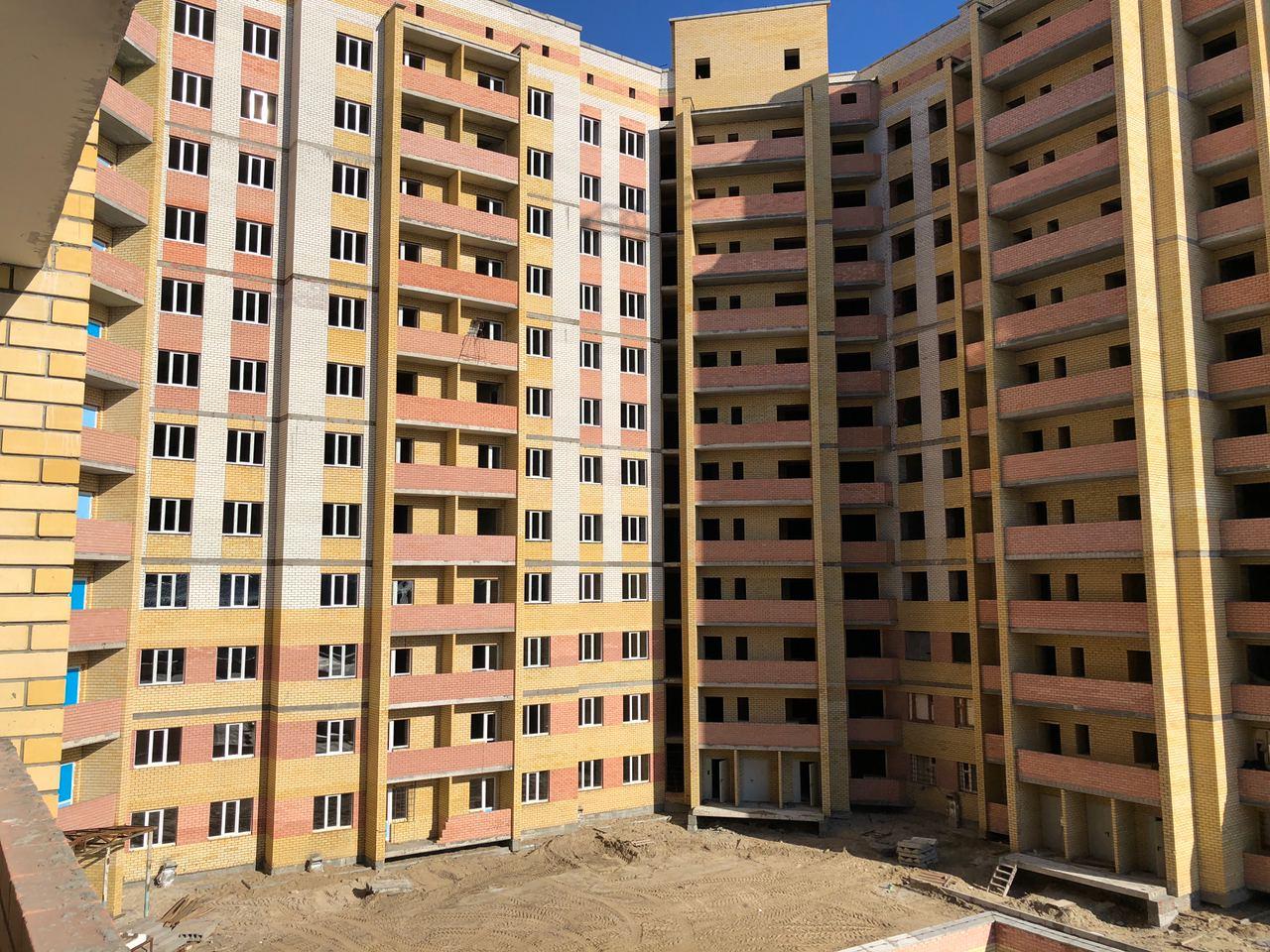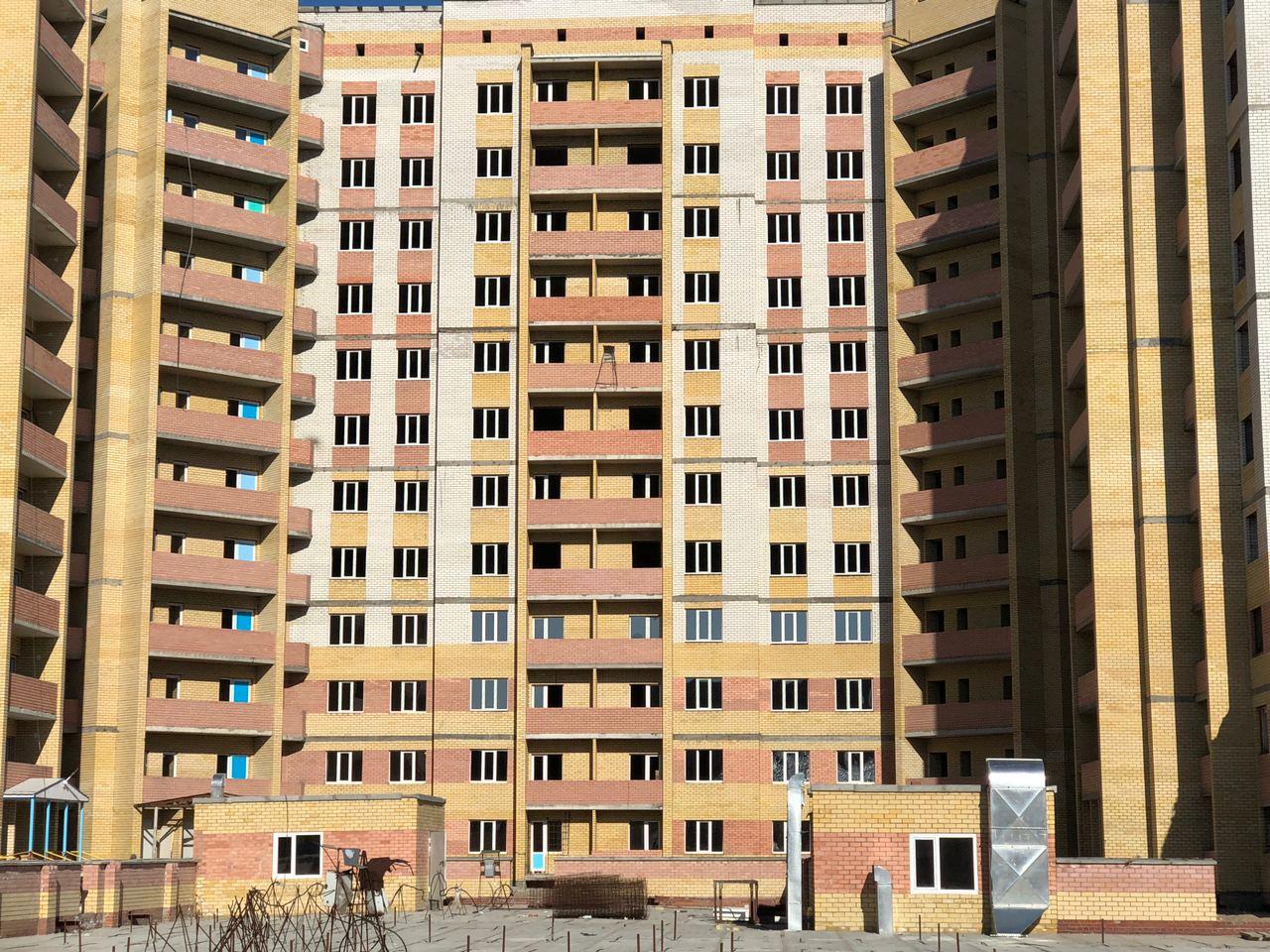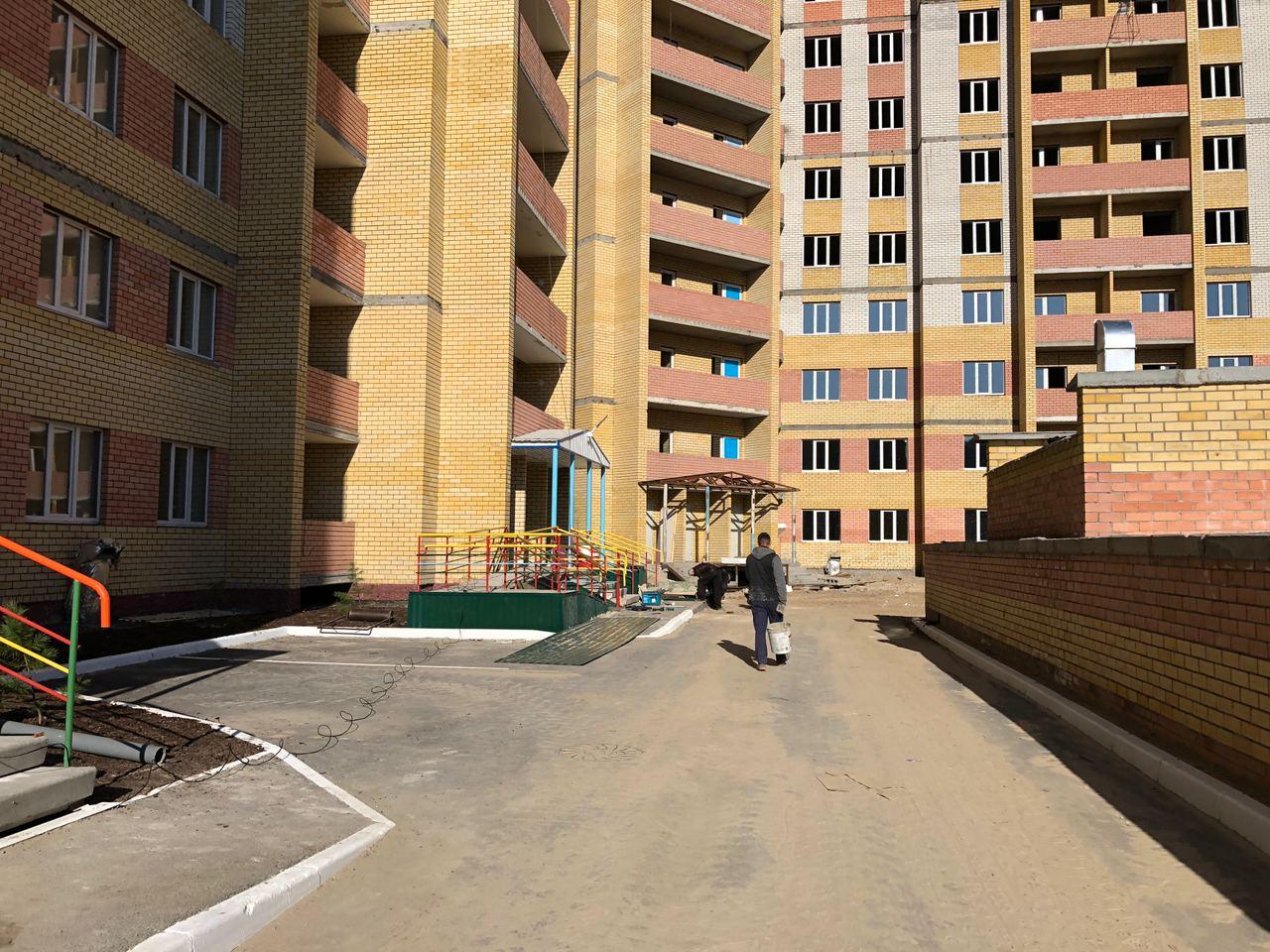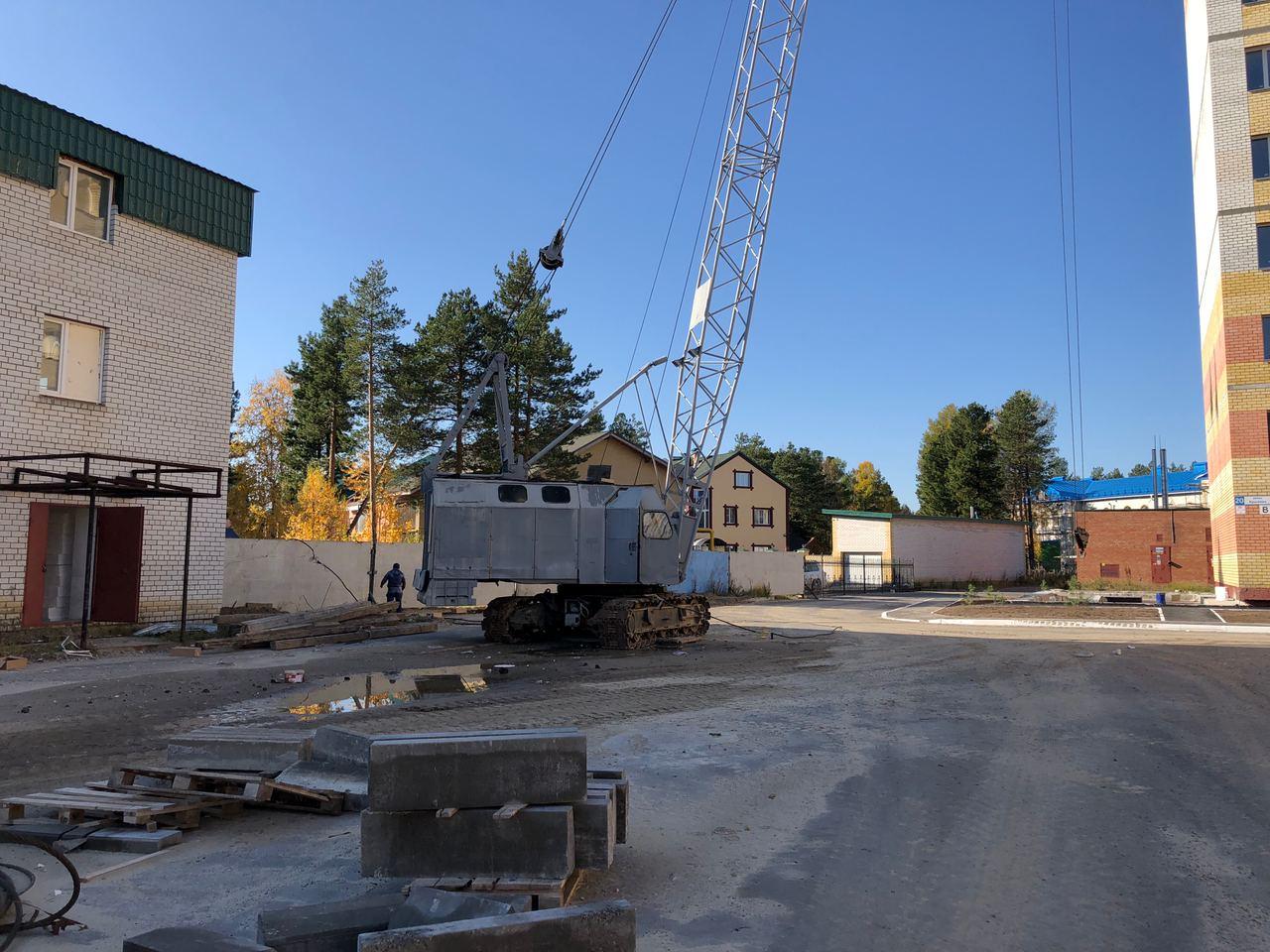 На строительной площадке первых четырех подъездов находятся ориентировочно 10-15 рабочих.