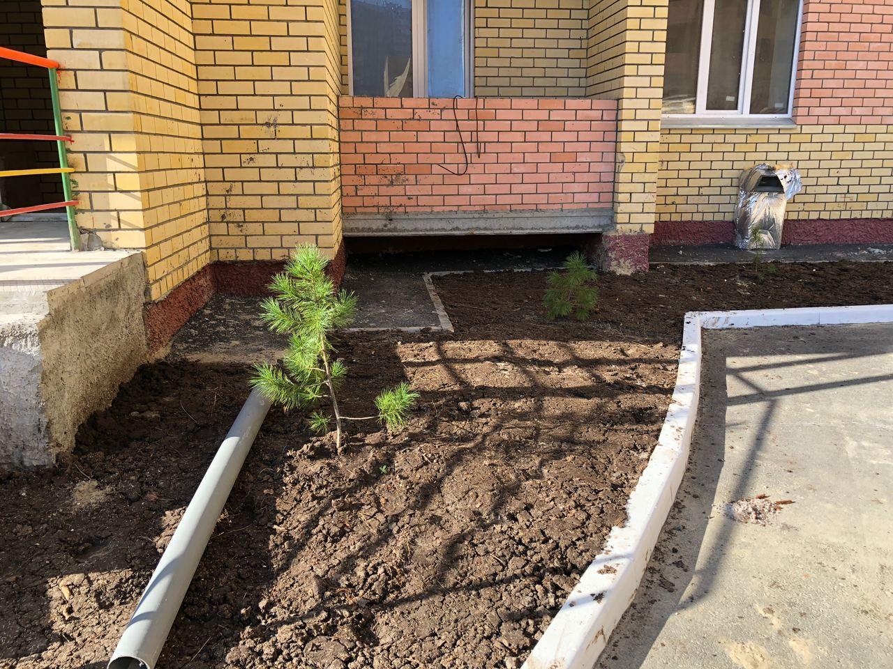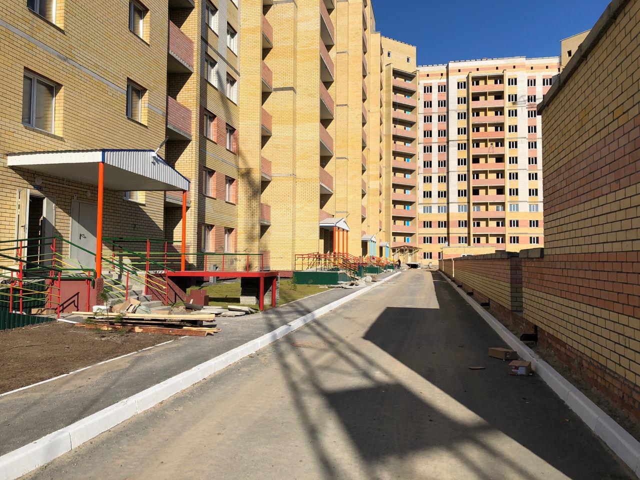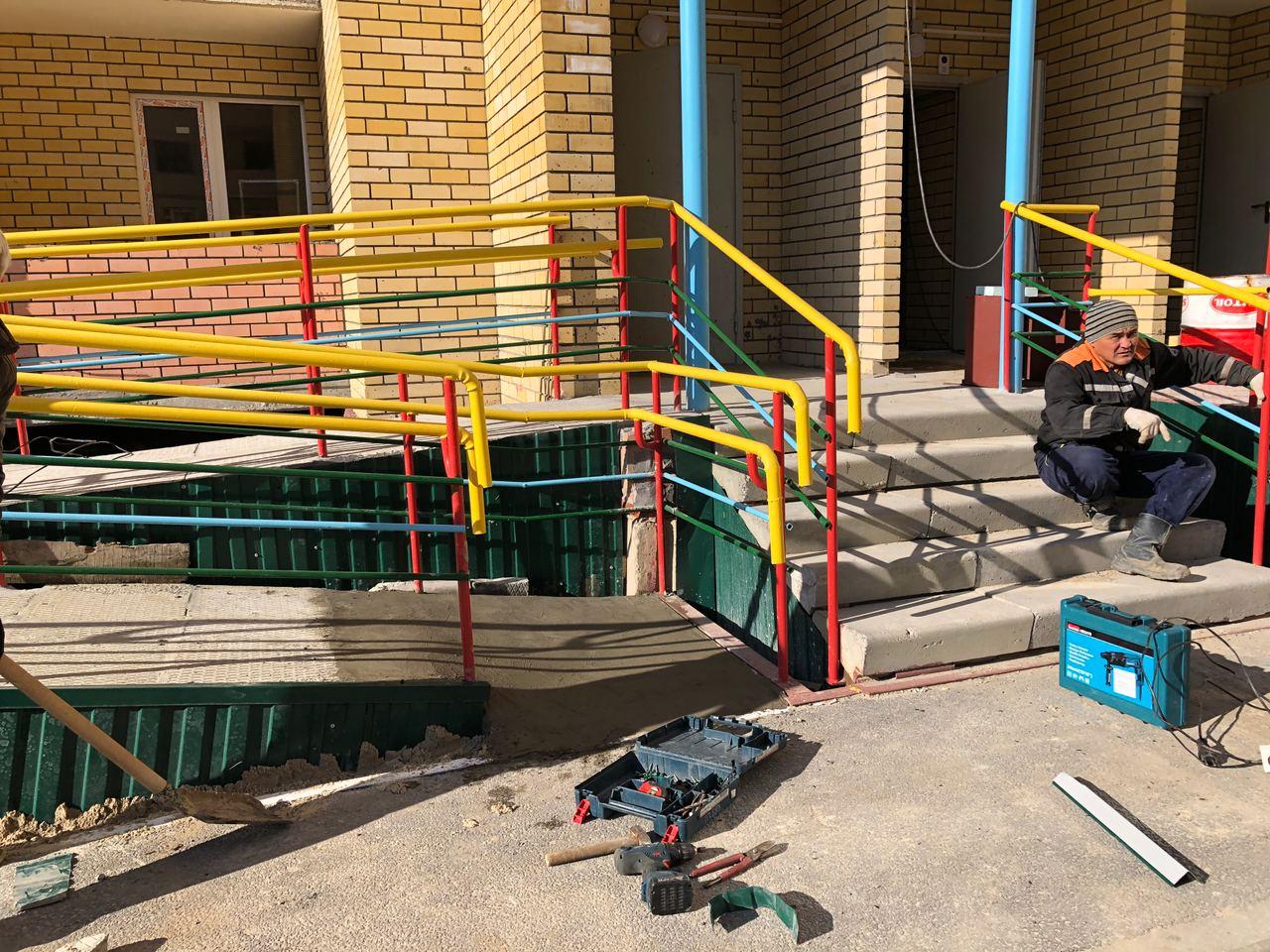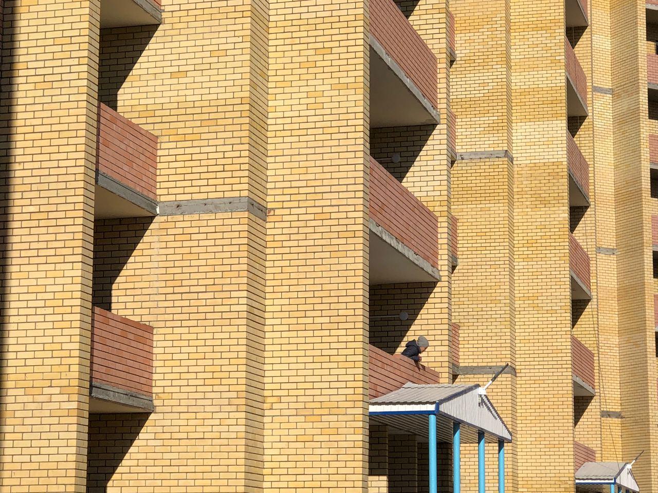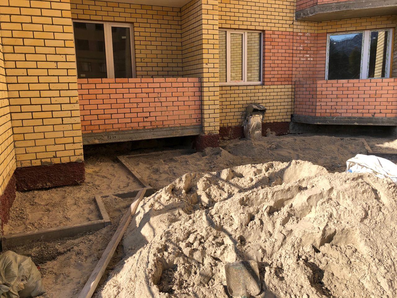 На строительной площадке первых четырех подъездов находятся ориентировочно 10-15 рабочих.