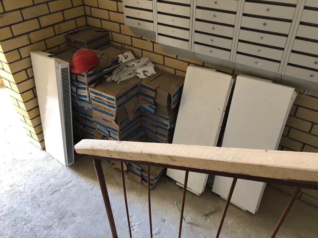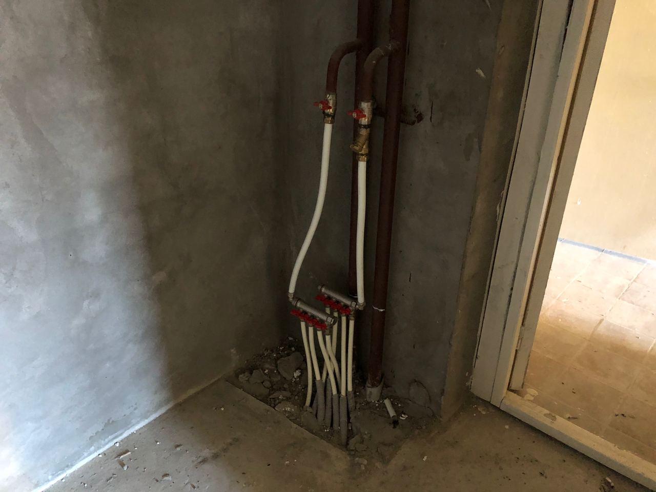 В первом подъезде работы не ведутся, дверь открыта. Произведены работы по подключению разводки отопления к радиаторам в квартирах с 1 по 8 этаж. Подключение выполнено к радиаторам, на входе в квартиру подключение выполнено не во всех квартирах. Производятся работы по отделке крыльца.