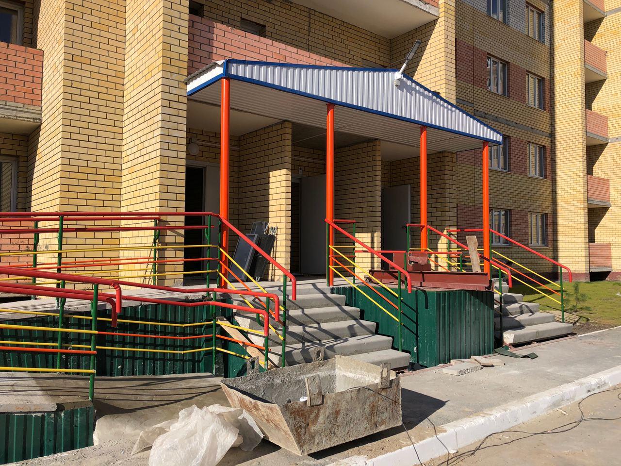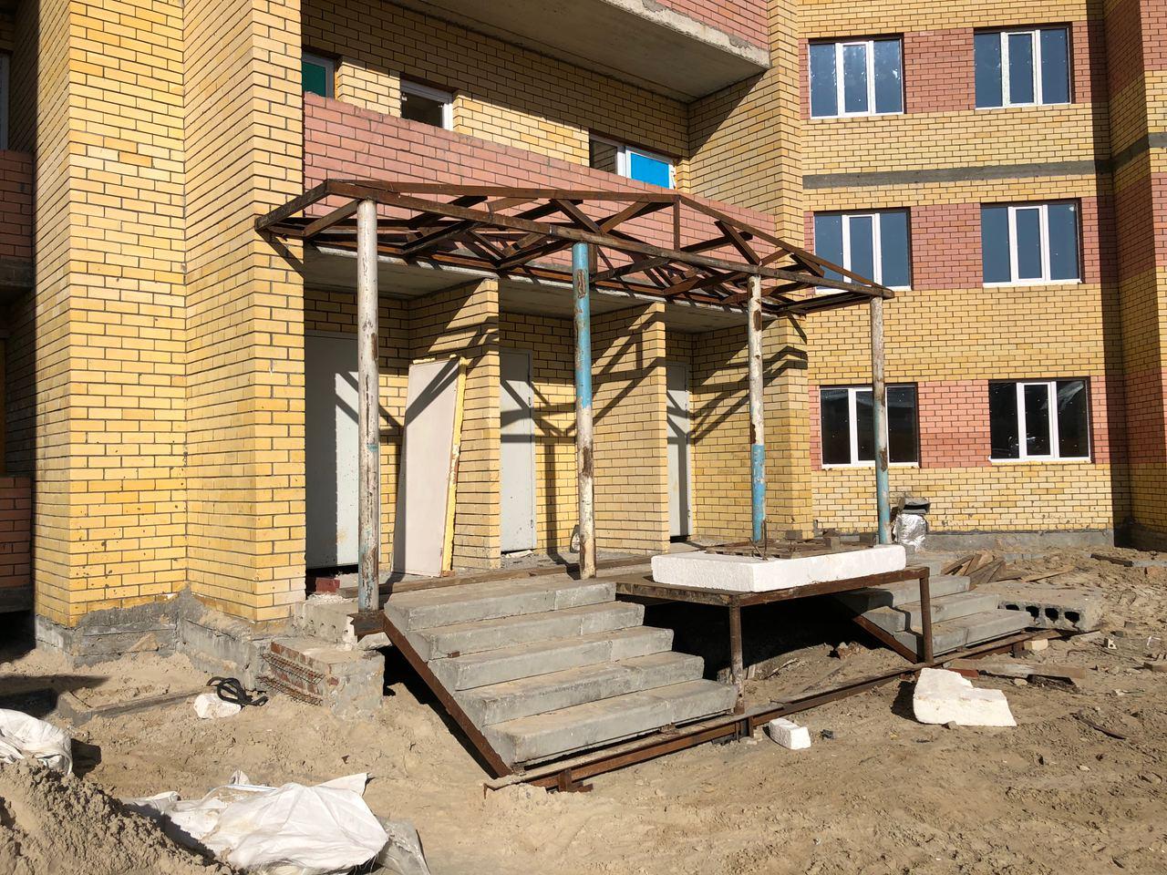 В третьем подъезде разводка отопления не подключена, двери открыты, ведутся работы по отделке мест общего пользования, крыльца.