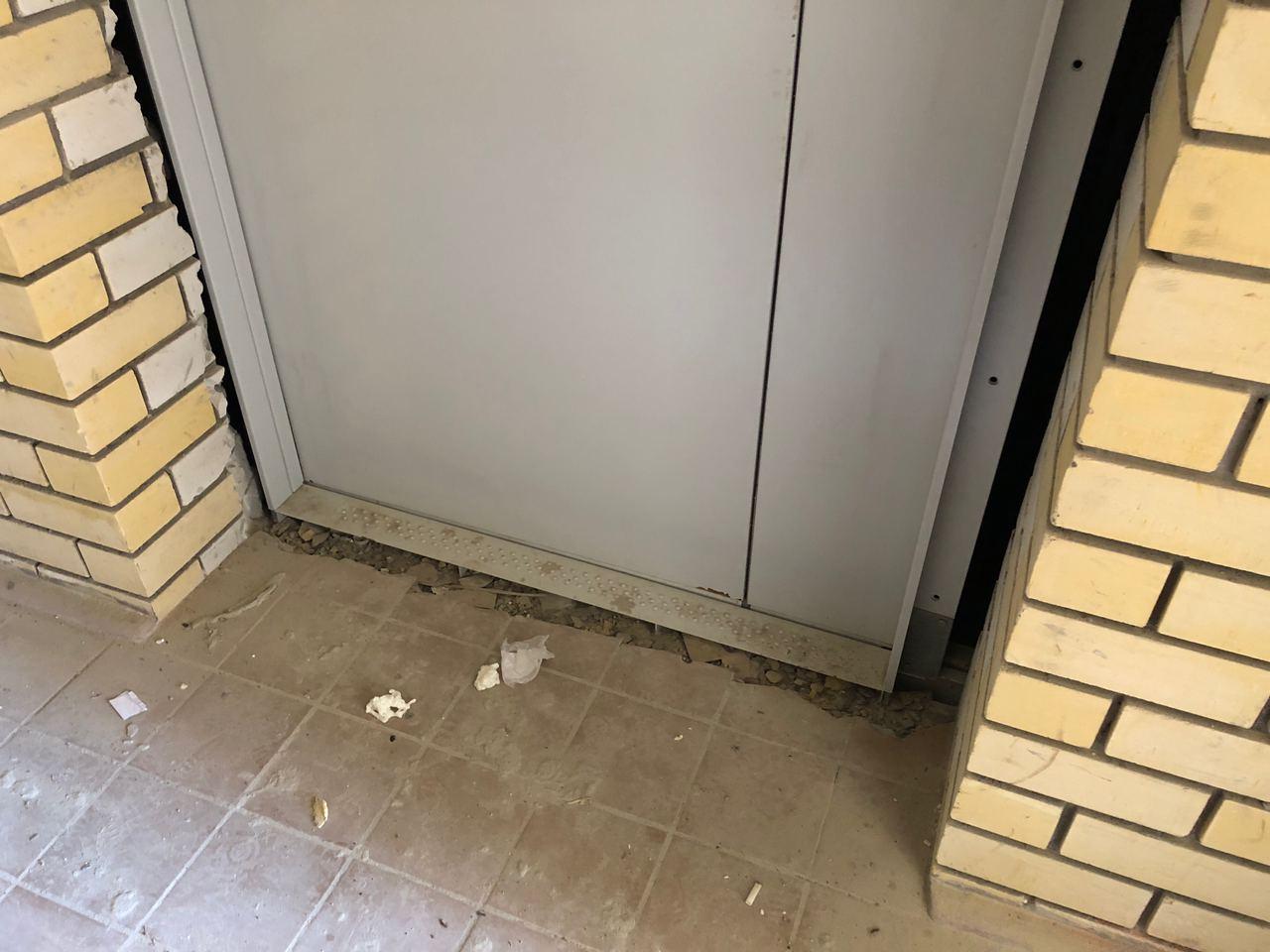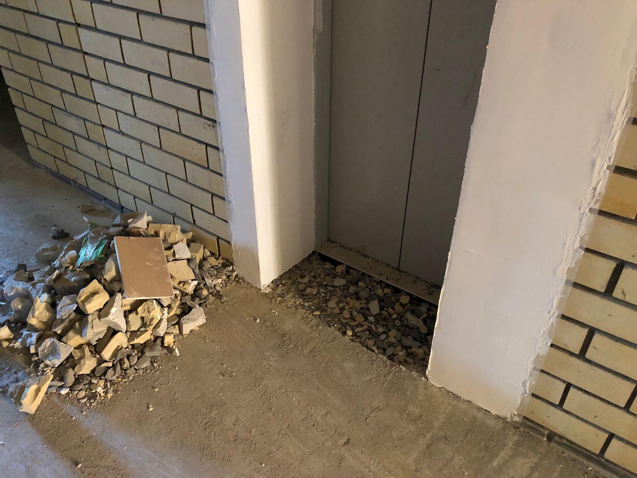 Во втором подъезде работы не ведутся, двери открыты. Работы по подключению разводки отопления произведены частично на всех этажах к радиаторам, на входе в квартиры не выполнено. Производятся работы по отделке крыльца.