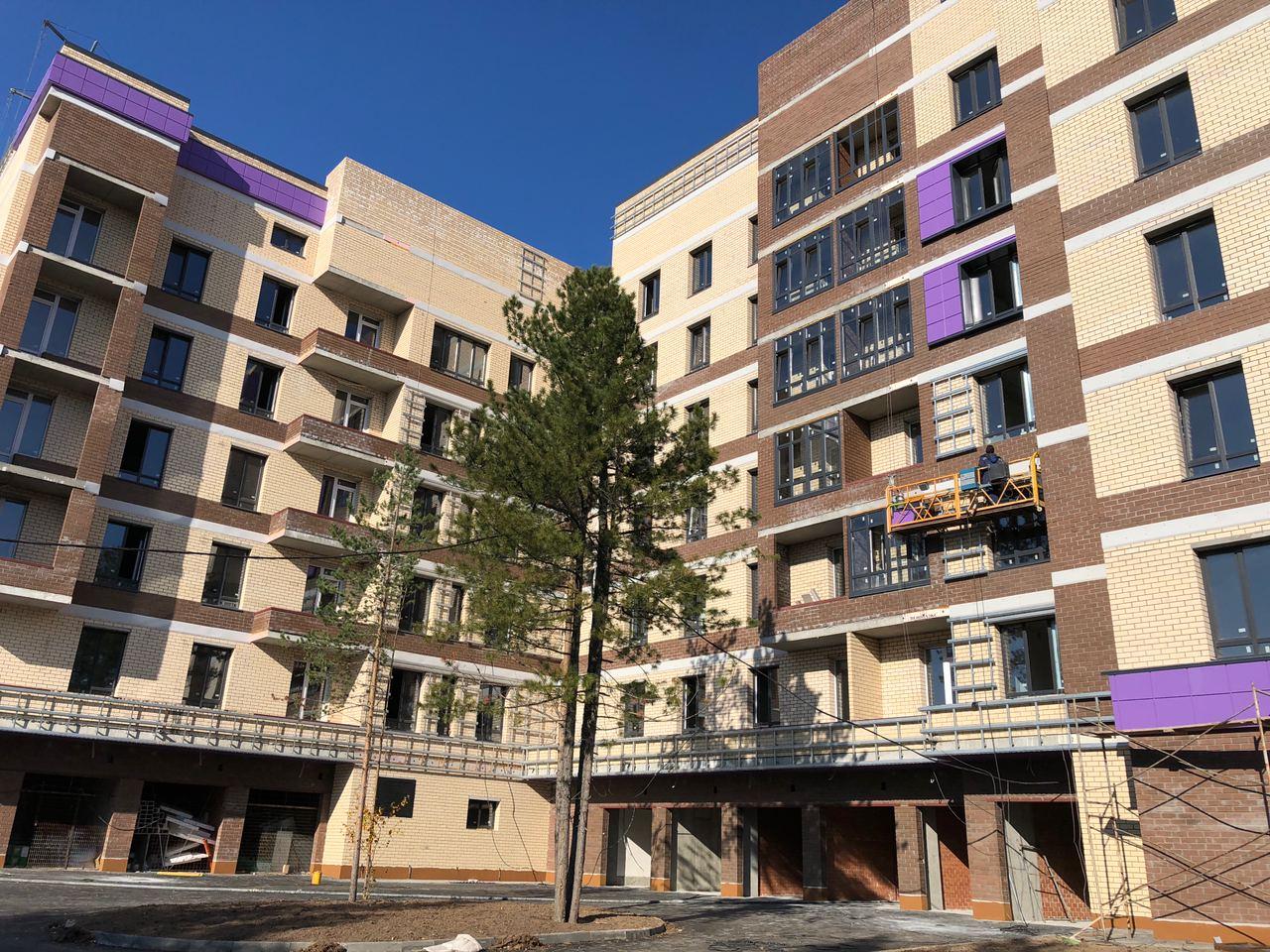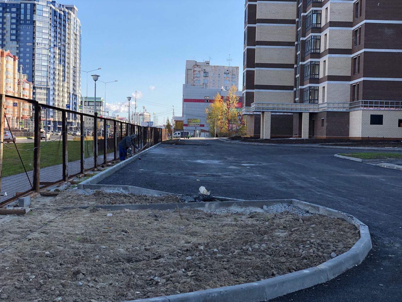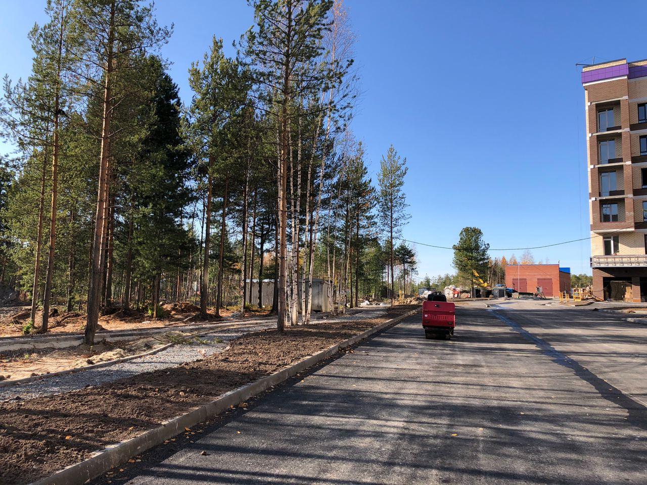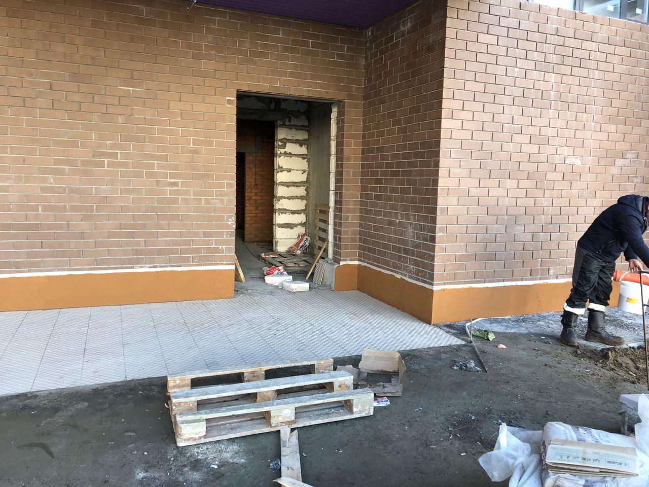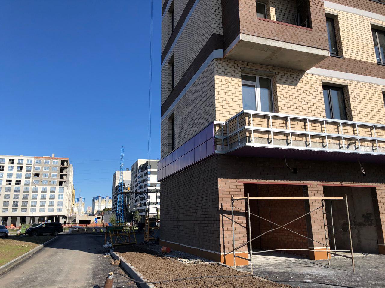 Производятся работы по работы по монтажу фасада, благоустройству территории, асфальтированию тротуаров.