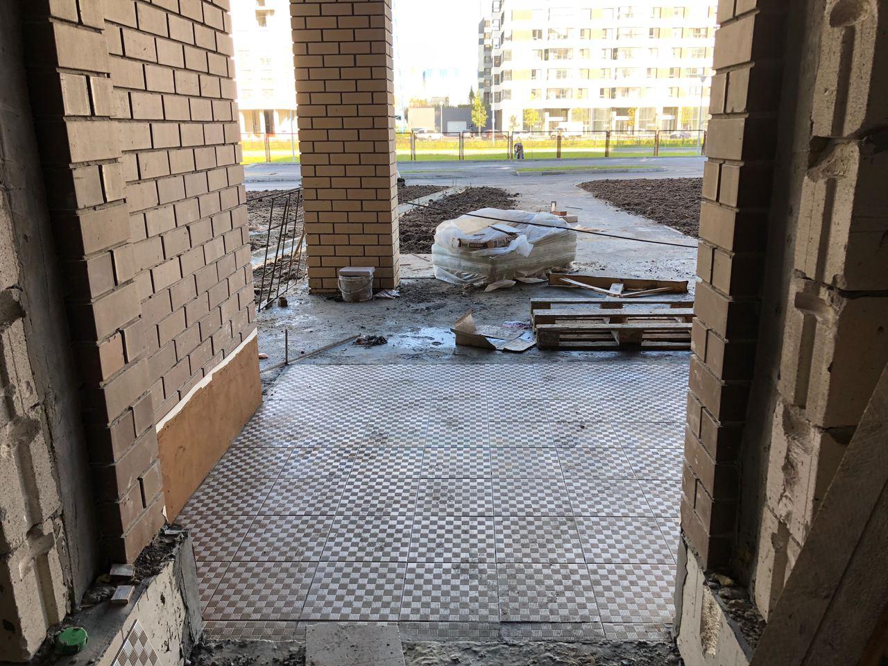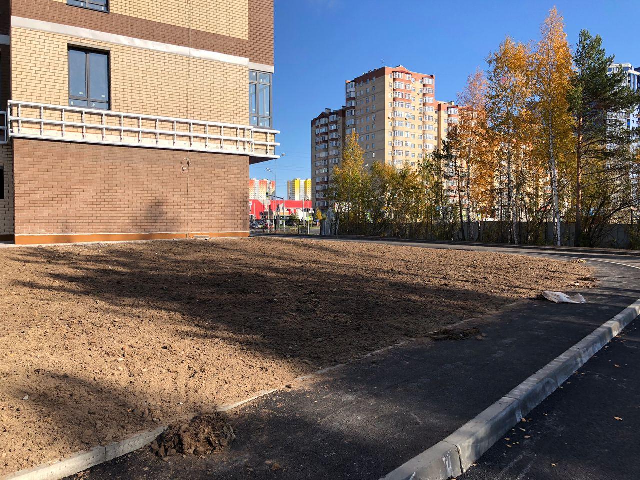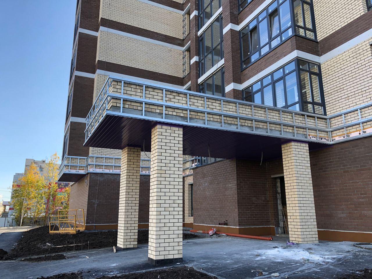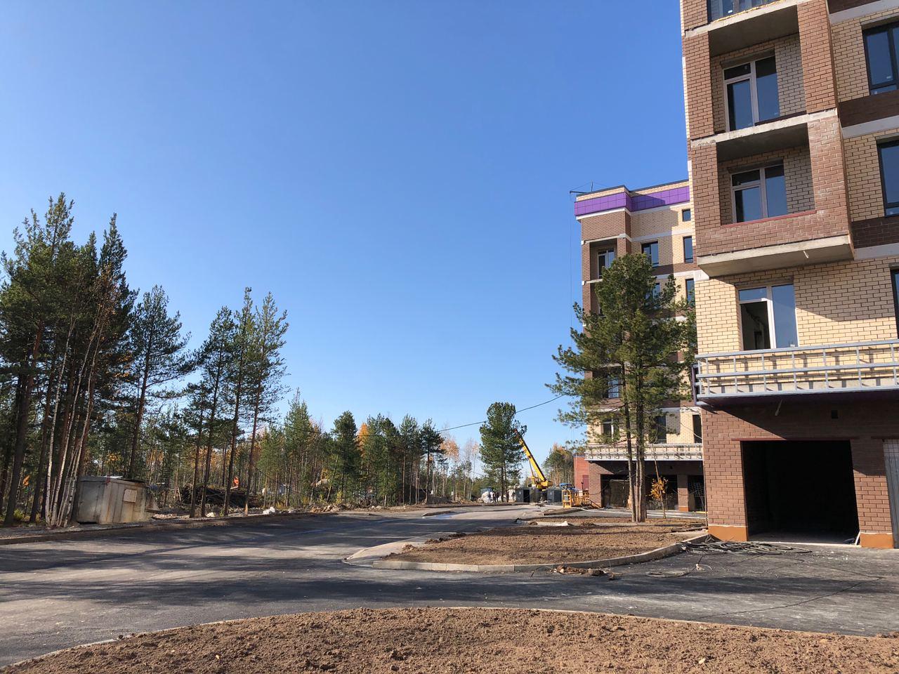 Производятся работы по работы по монтажу фасада, благоустройству территории, асфальтированию тротуаров.
