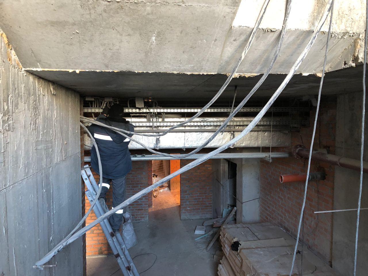 Ведутся работы по монтажу электрики внутри секций.