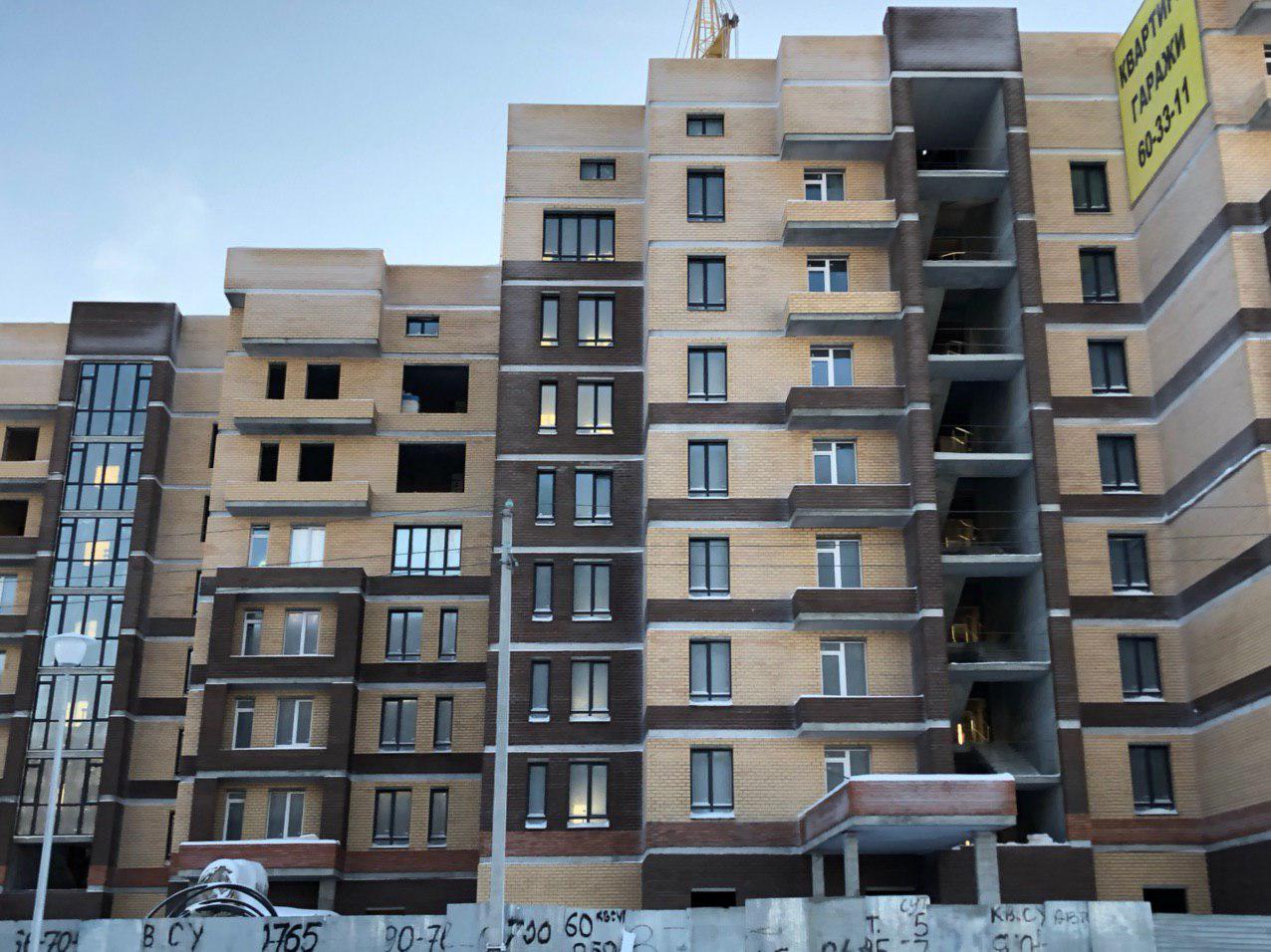Работает кран, автокран, производится завоз и подъем строительного материала. Проводятся работы по остеклению оконных проемов.
