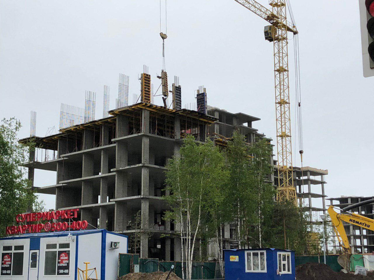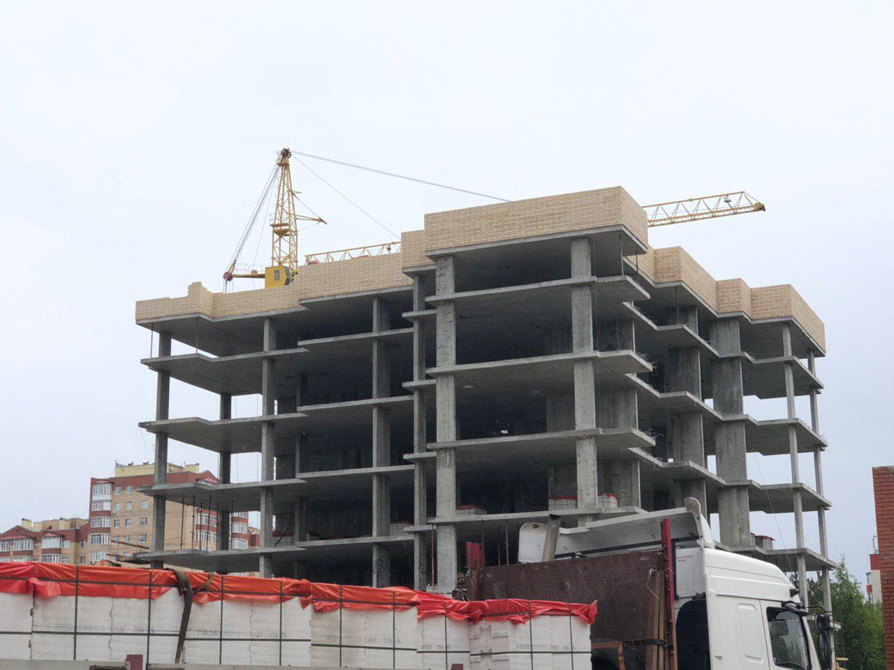 Произведена заливка бетоном опалубки арматурного каркаса монолитных конструкций (колонн) на 6 этаже (ближняя секция).