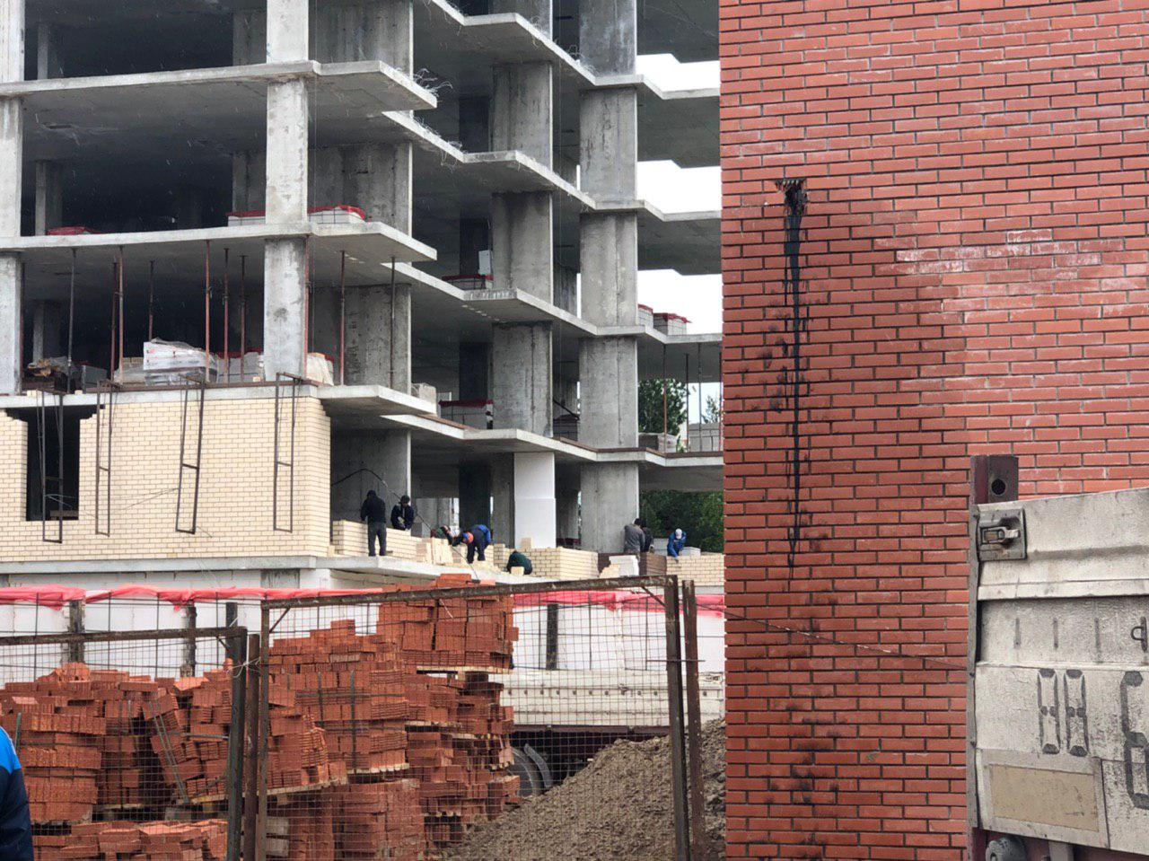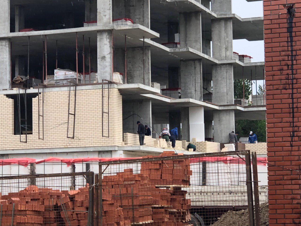Каменщиками в количестве 10-12 человек начата кладка ограждающих конструкций 2 этажа. В количестве 4 человек продолжается кладка ограждающих конструкций на 8 этаже.