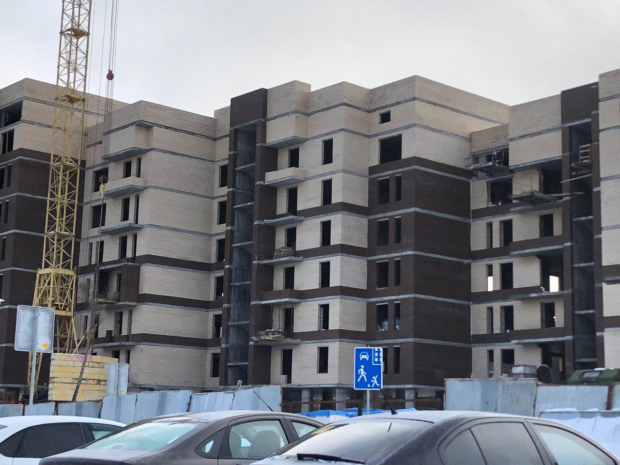 Ведутся работы по укладке ограждающих конструкций 6 этажной секции.