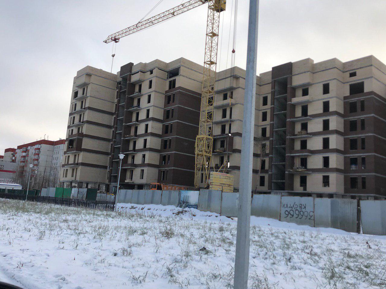 Производятся работы по укладке ограждающих конструкций 8 этажной секции.
