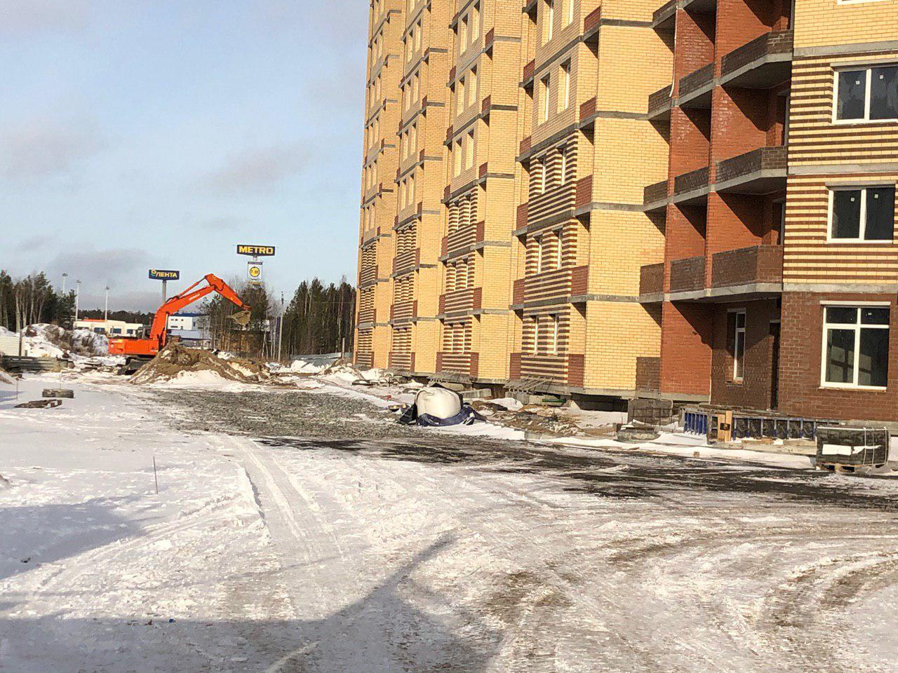 ведутся работы по благоустройству прилегающей территории. Установка бордюров. Произведено асфальтирование проезда внутри двора.