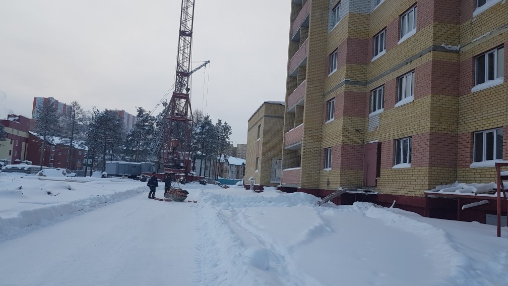 В 5-6 подъездах ведутся отделочные работы, укладка плитки в МОП, сборка кранов для подачи отопления, установка радиаторов отопления в квартирах, установка плафонов в МОП, монтаж лифта в 6 подъезде;