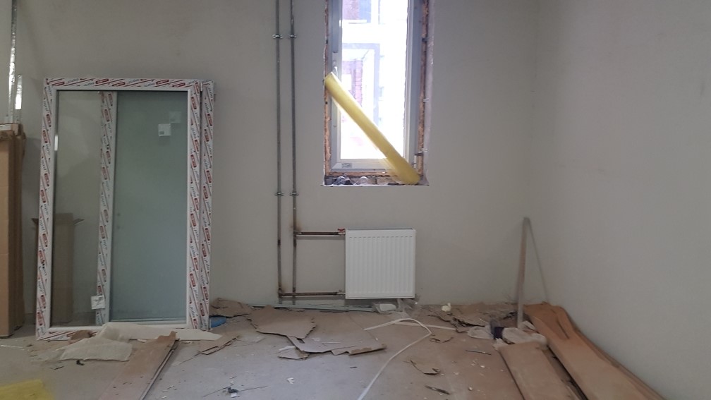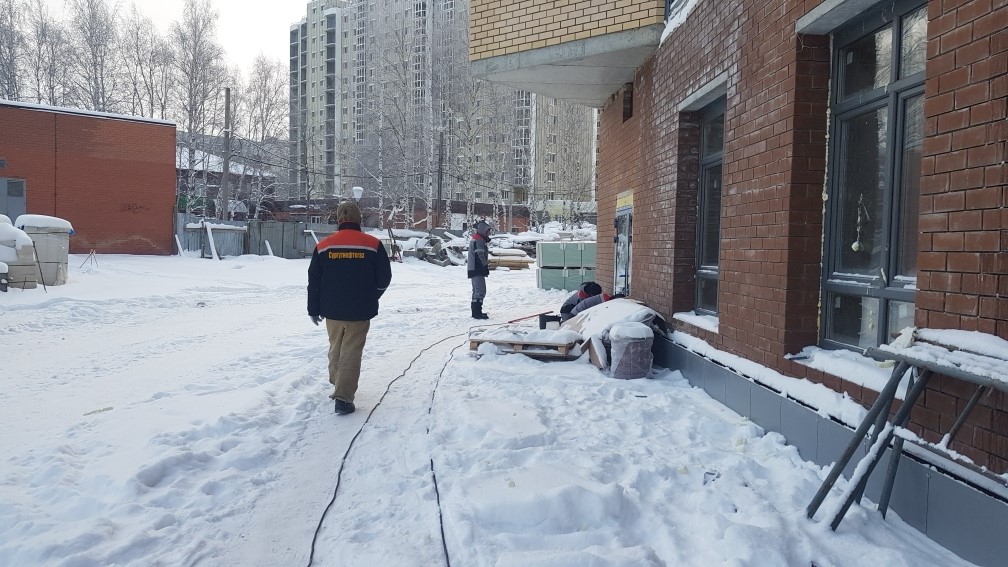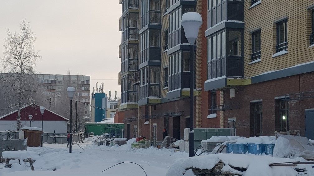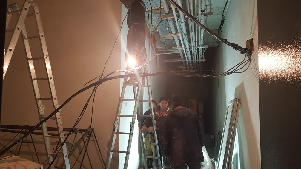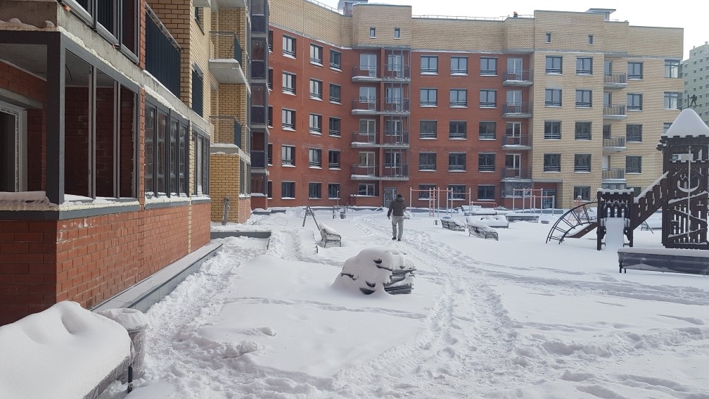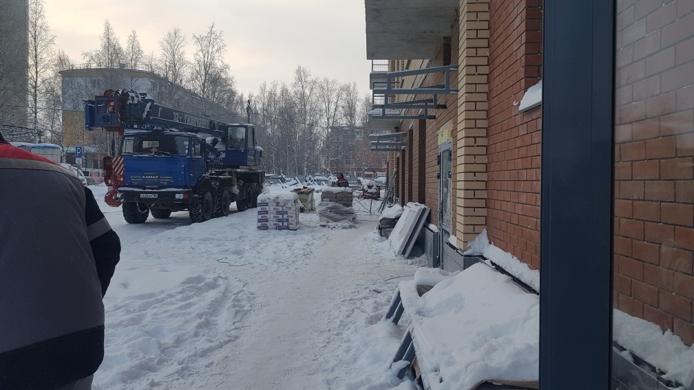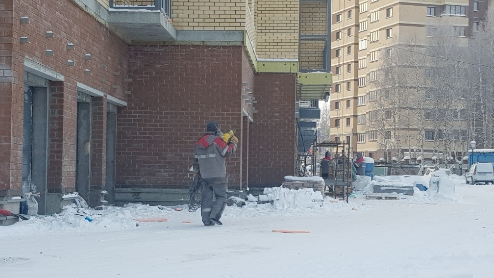 Ведется монтаж внутренней электропроводки. Утепление с последующим оштукатуриванием стен входных групп, спец помещений, гаражей, кладовых. Монтаж воздуховодов вентиляции. Монтаж оконных конструкций. Монтаж балконных и кровельных ограждений. Ведутся фасадные работы. Монтаж слаботочных сетей. Отделочные работы по подъездам, установка квартирных дверей. Общестроительные работы. Ведется обвязка систем пожаротушения. Устройство чистовых полов паркинга.