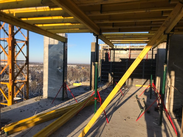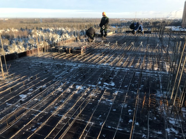 На строительной площадке ведутся строительно-монтажные работы.