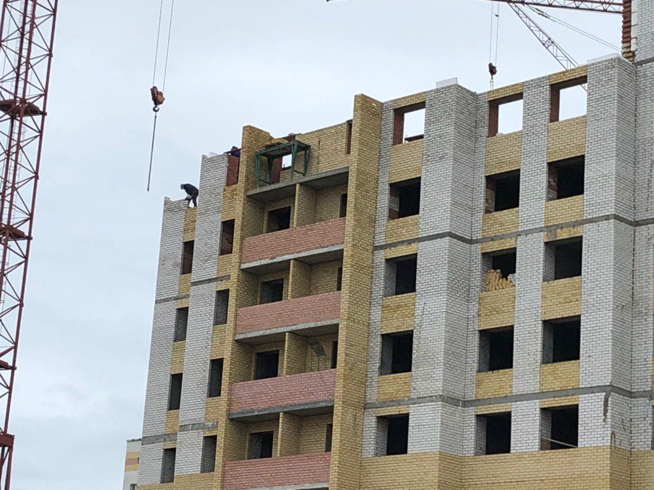 Ведется кладка ограждающих конструкций многоквартирного жилого дома и перегородок 8 этажа (3 человека). Ведется кладка ограждающих конструкций многоквартирного жилого дома и перегородок 12 этажа каменщиками в количестве 2 человек.