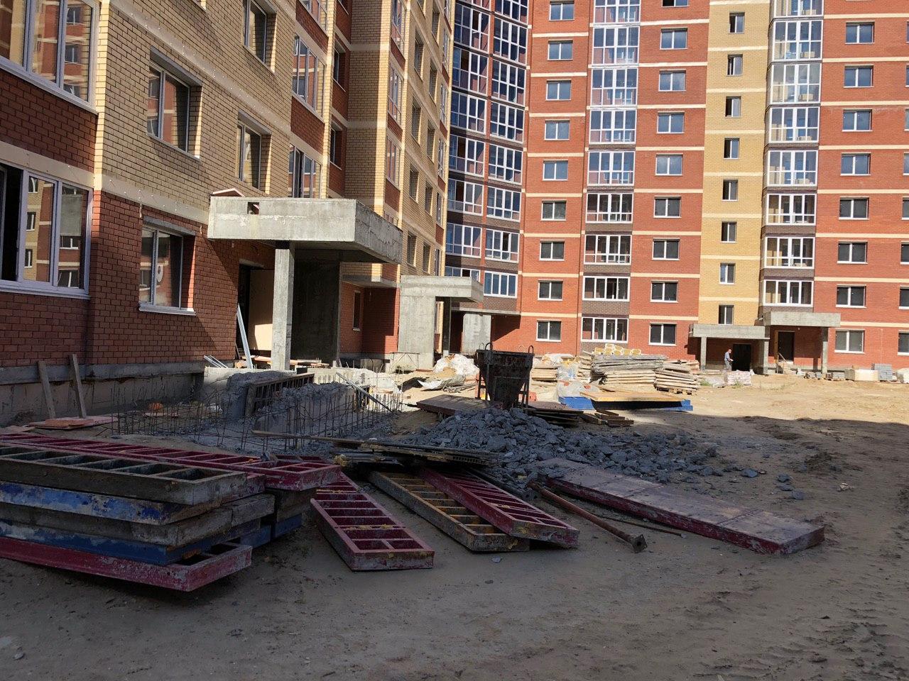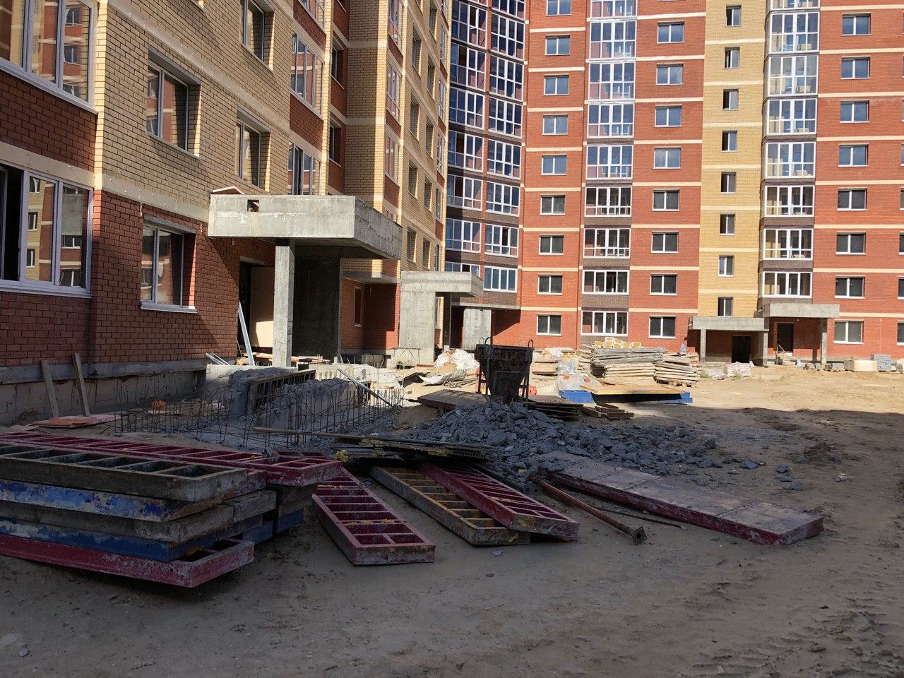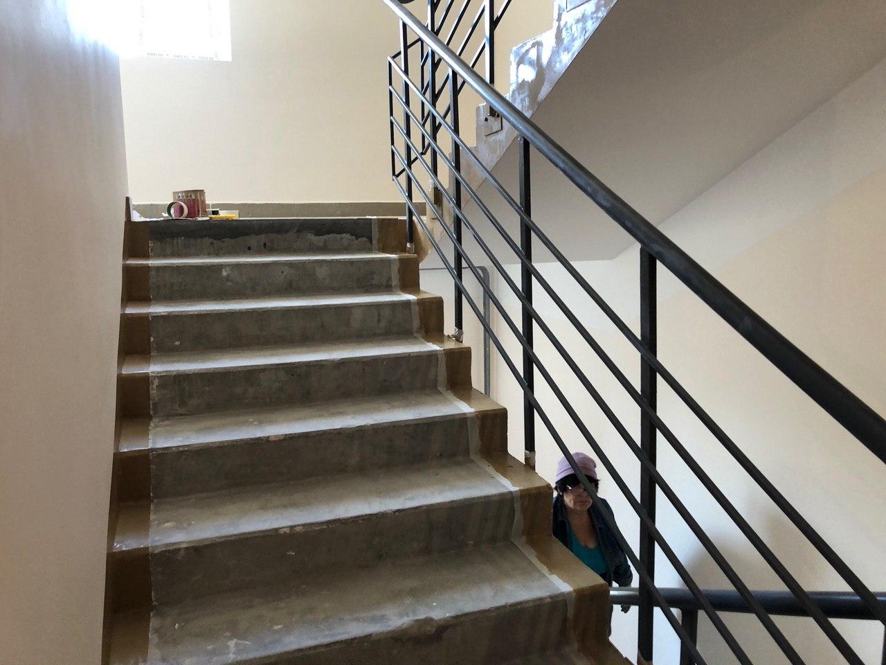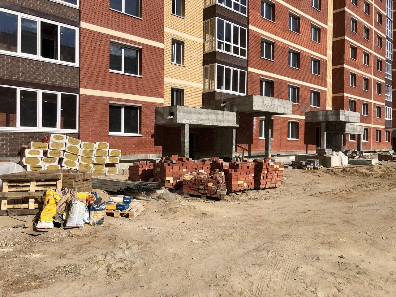 В 3-7 секциях производится шпатлевка, окраска мест общего пользования, установка входных дверей в квартиры. На строительной площадке находится порядка 30 человек.