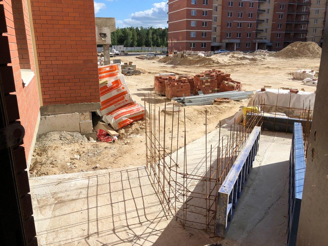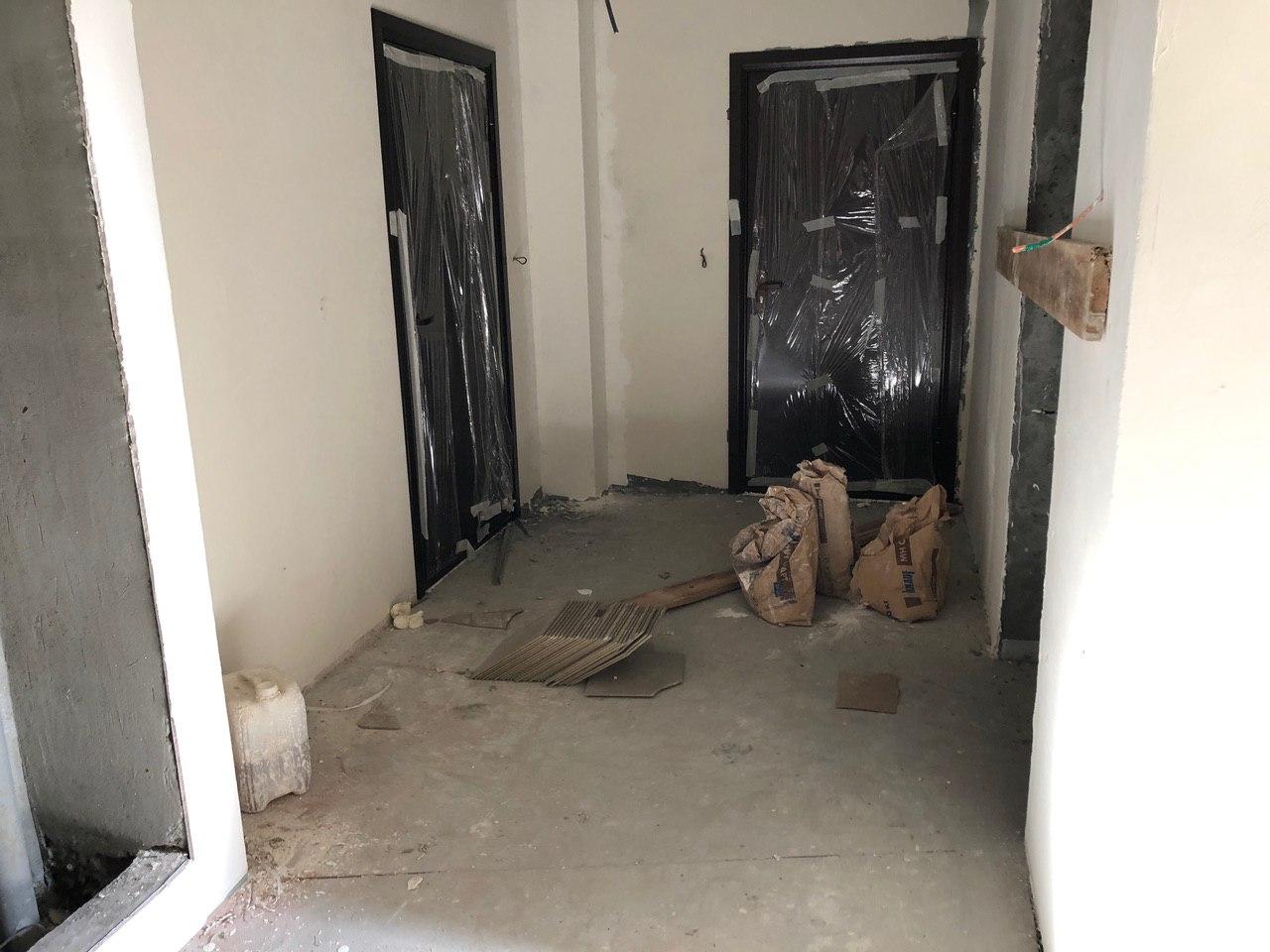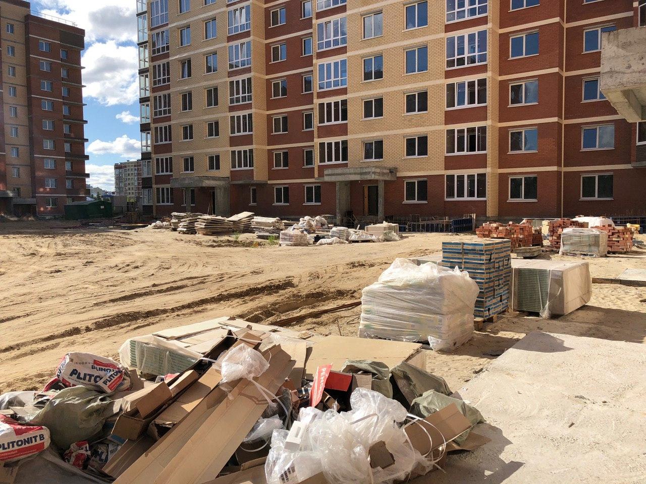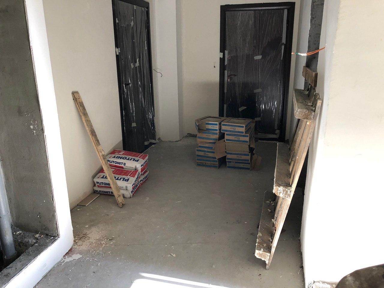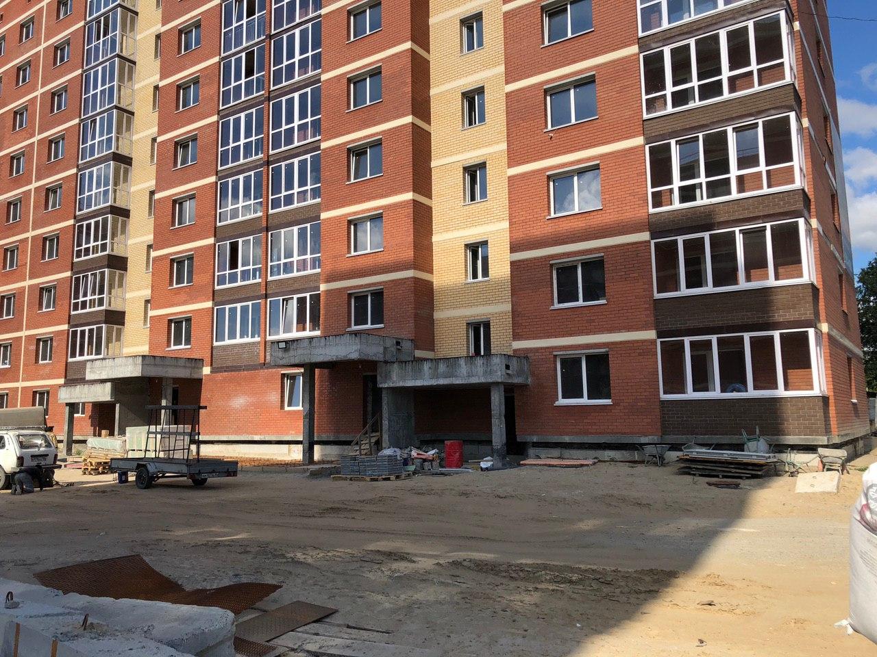 В 3-7 секциях производится шпатлевка, окраска мест общего пользования, установка входных дверей в квартиры. На строительной площадке находится порядка 30 человек.