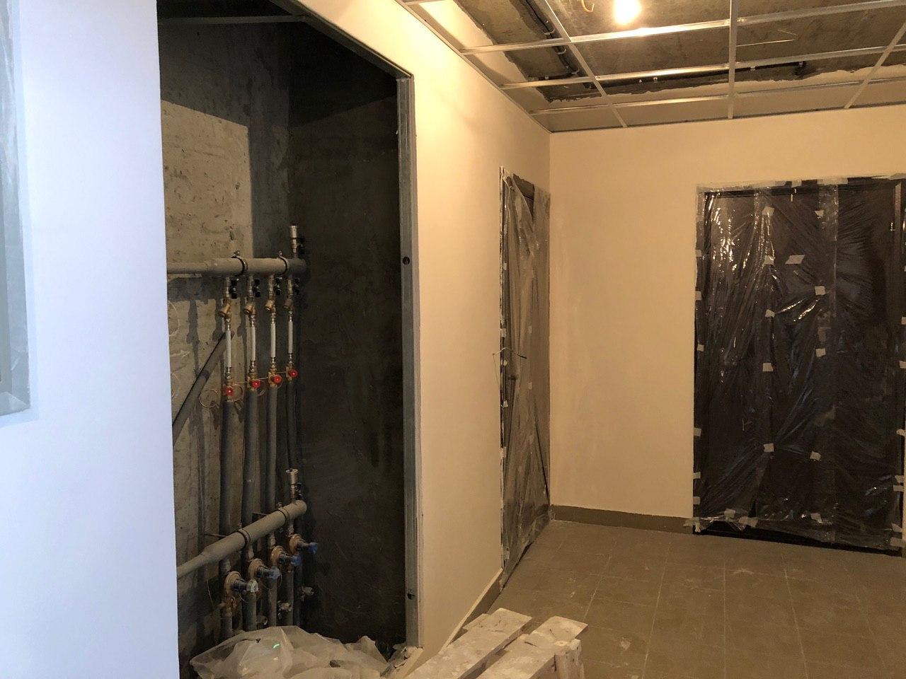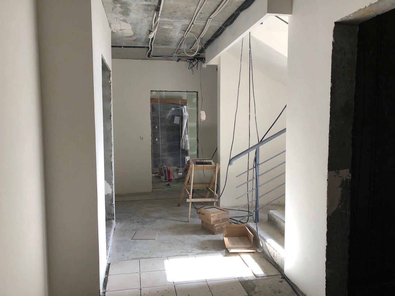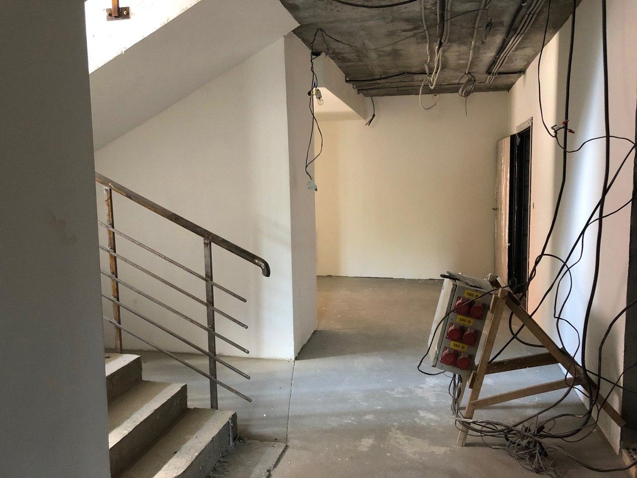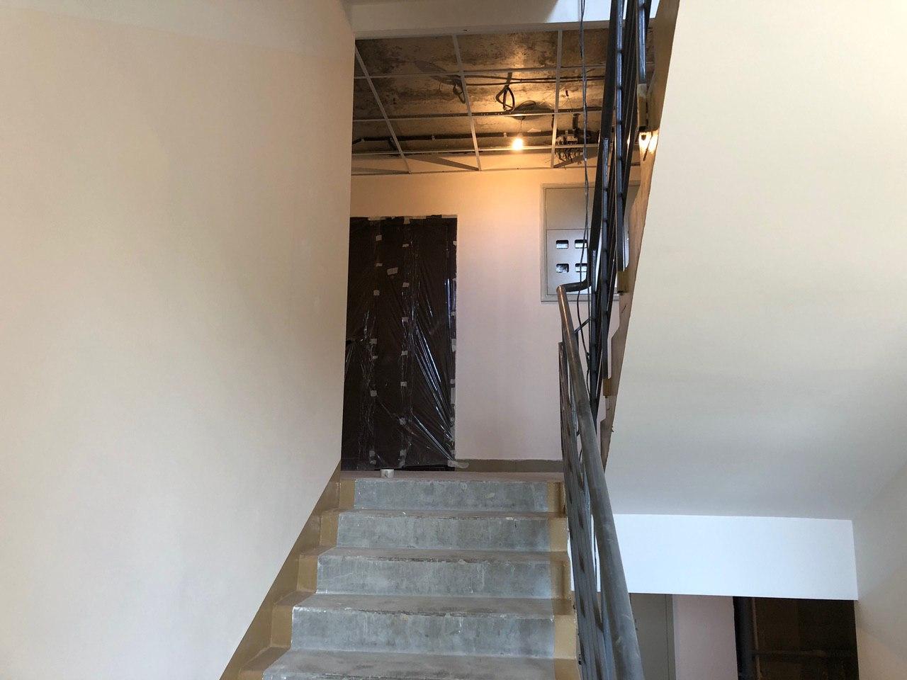 Ведутся чистовые отделочные работы мест общего пользования. В 1-2 секциях выполнены работы по укладке плитки в местах общего пользования, производится окраска лестничных пролетов, монтаж подвесных потолков, монтаж лифтового оборудования.
