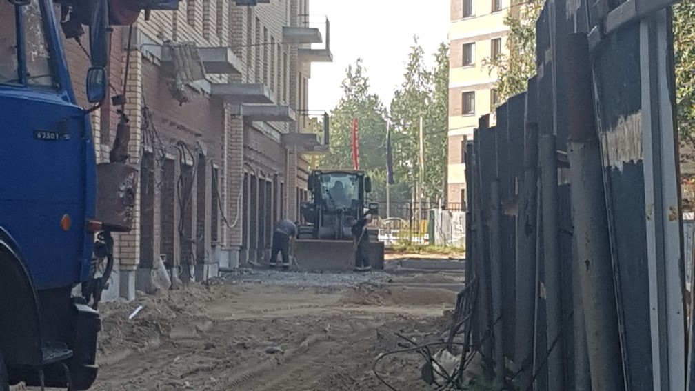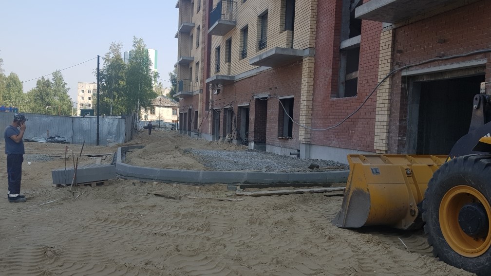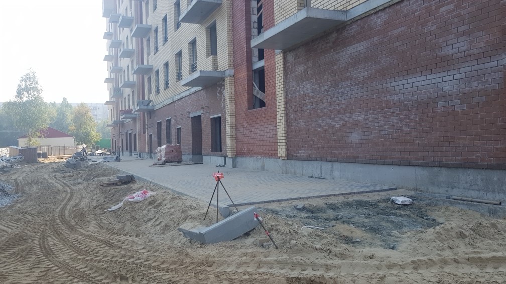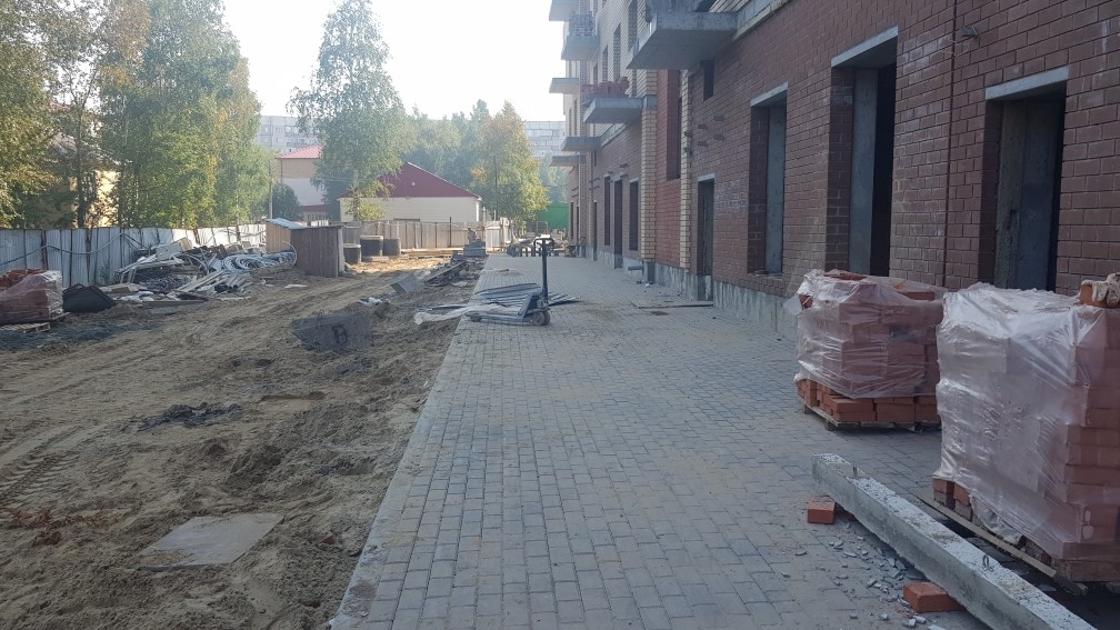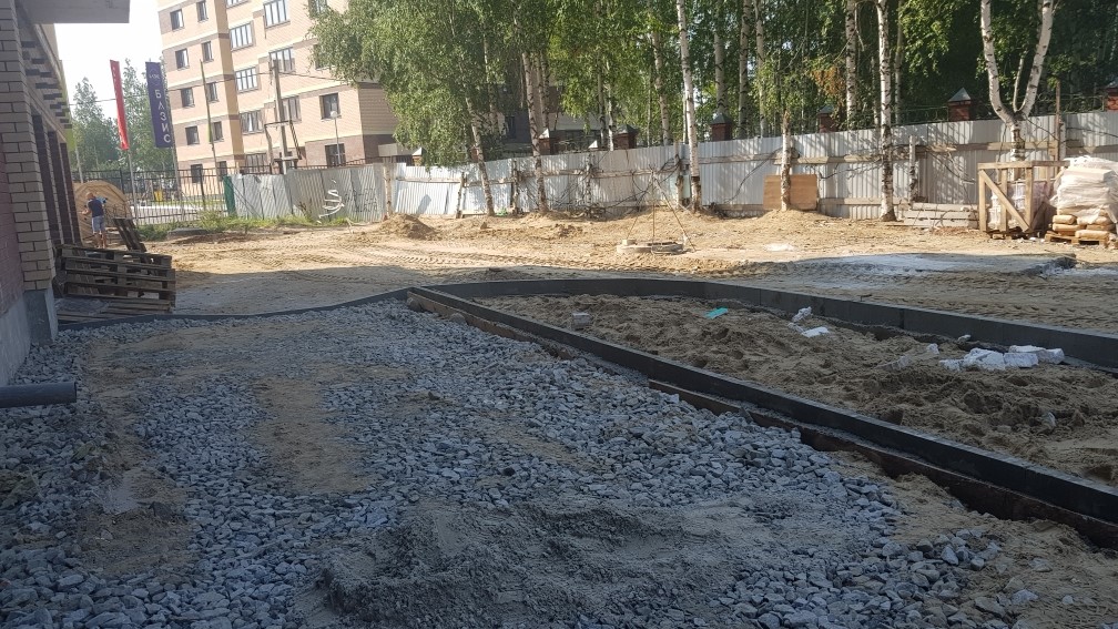Выполняются работы по благоустройству территории, кладка тротуарной плитки.