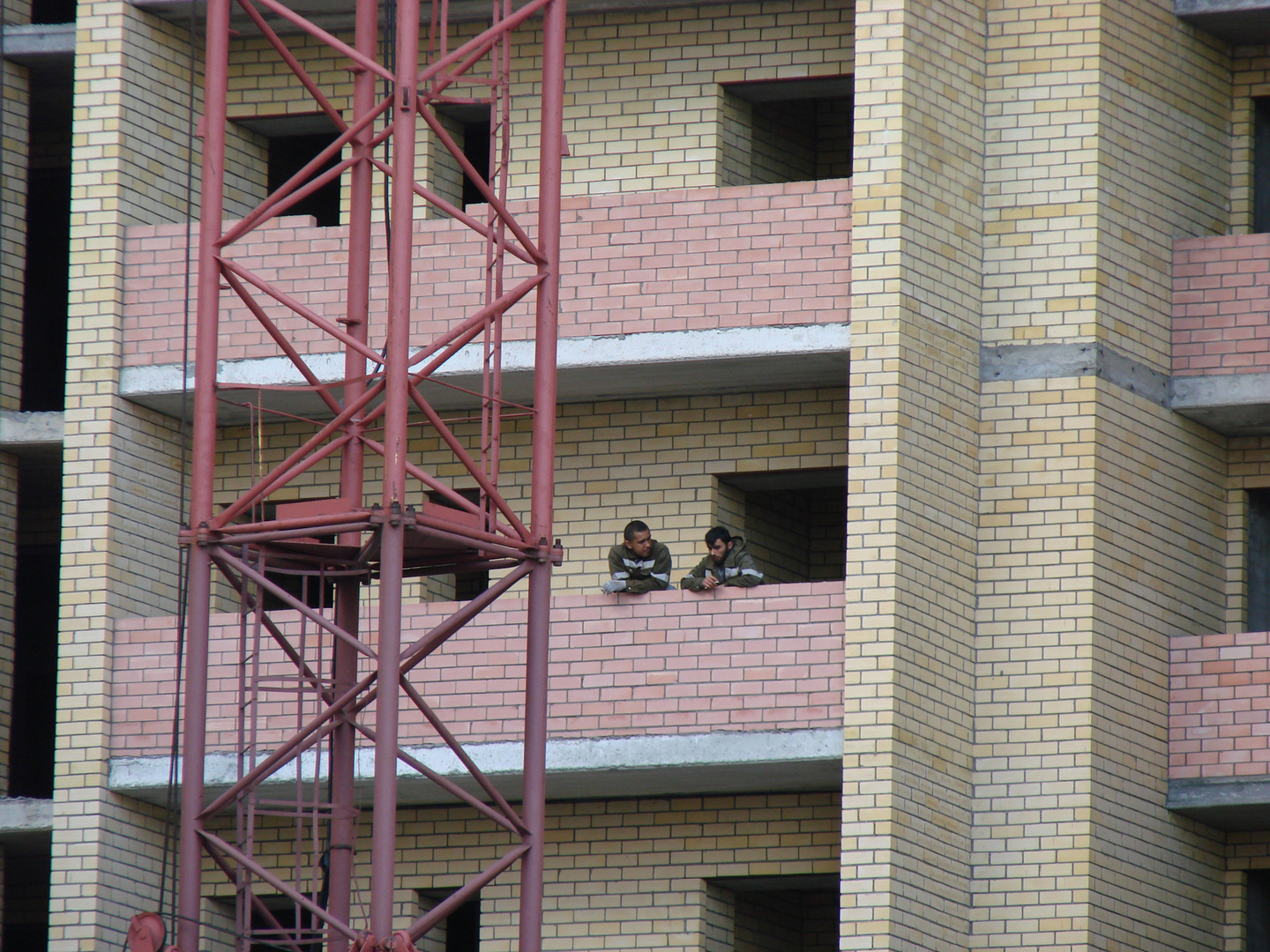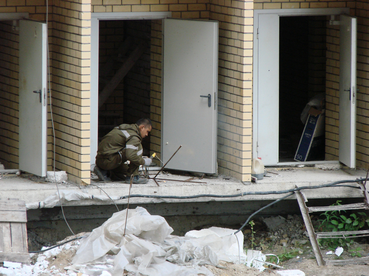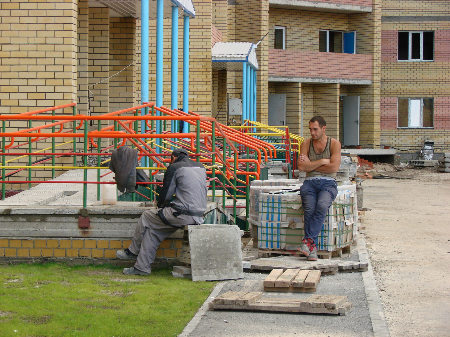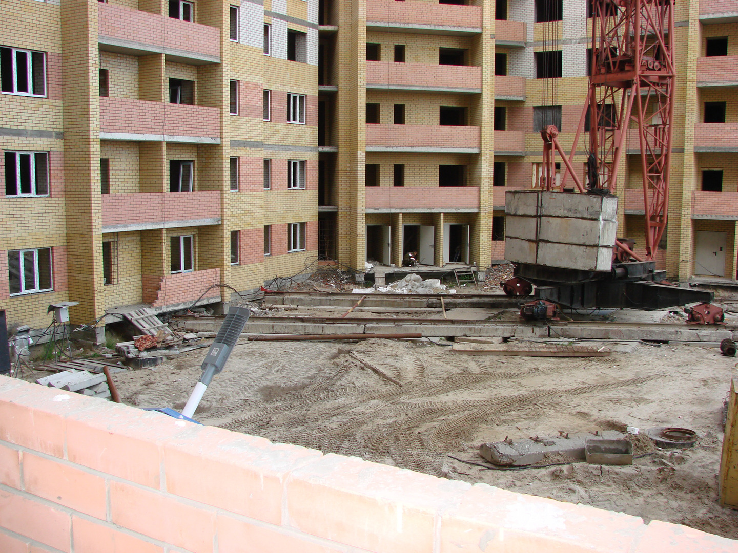 На строительной площадке первых четырех подъездов находятся 8 рабочих.