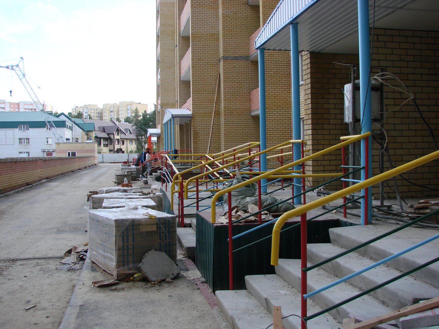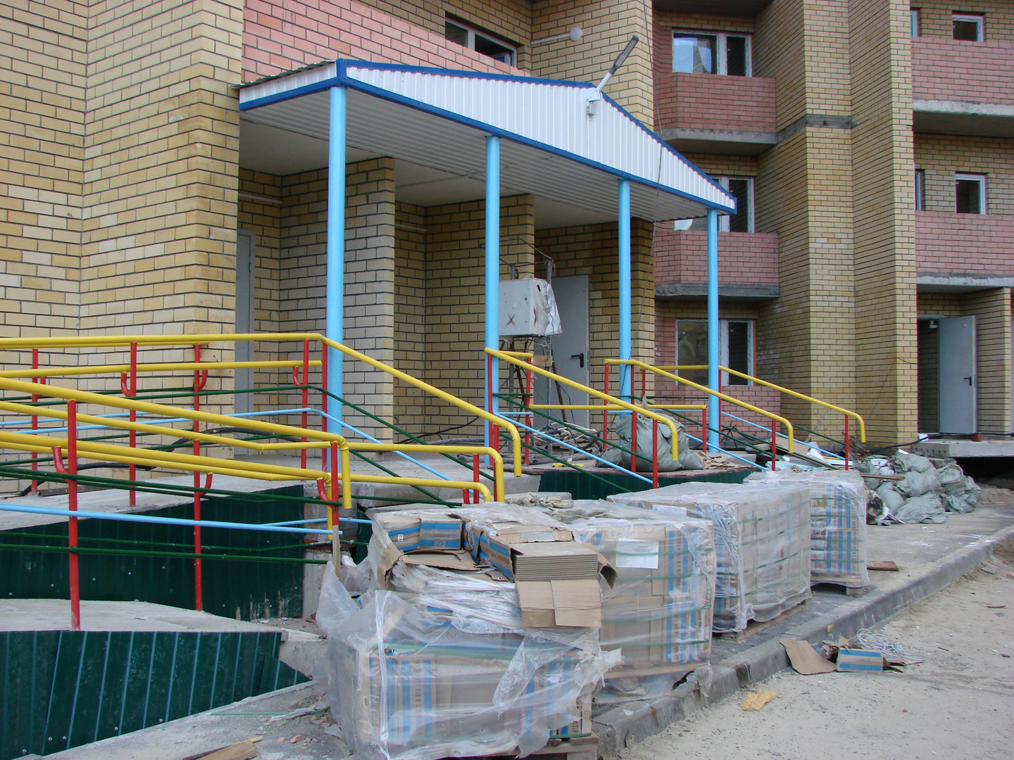 В третьем подъезде ведутся работы по кладке плитки на крыльце, подъезда. Электрики проводят пусконаладочные работы освещения. 2 штукатура-маляра производят отделочные работы на лестничной клетке.