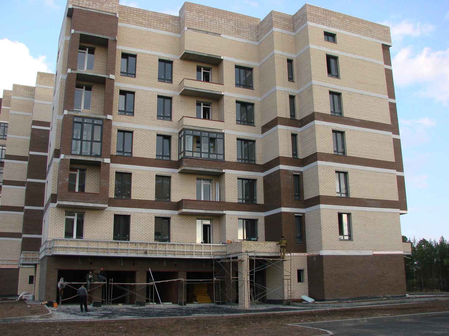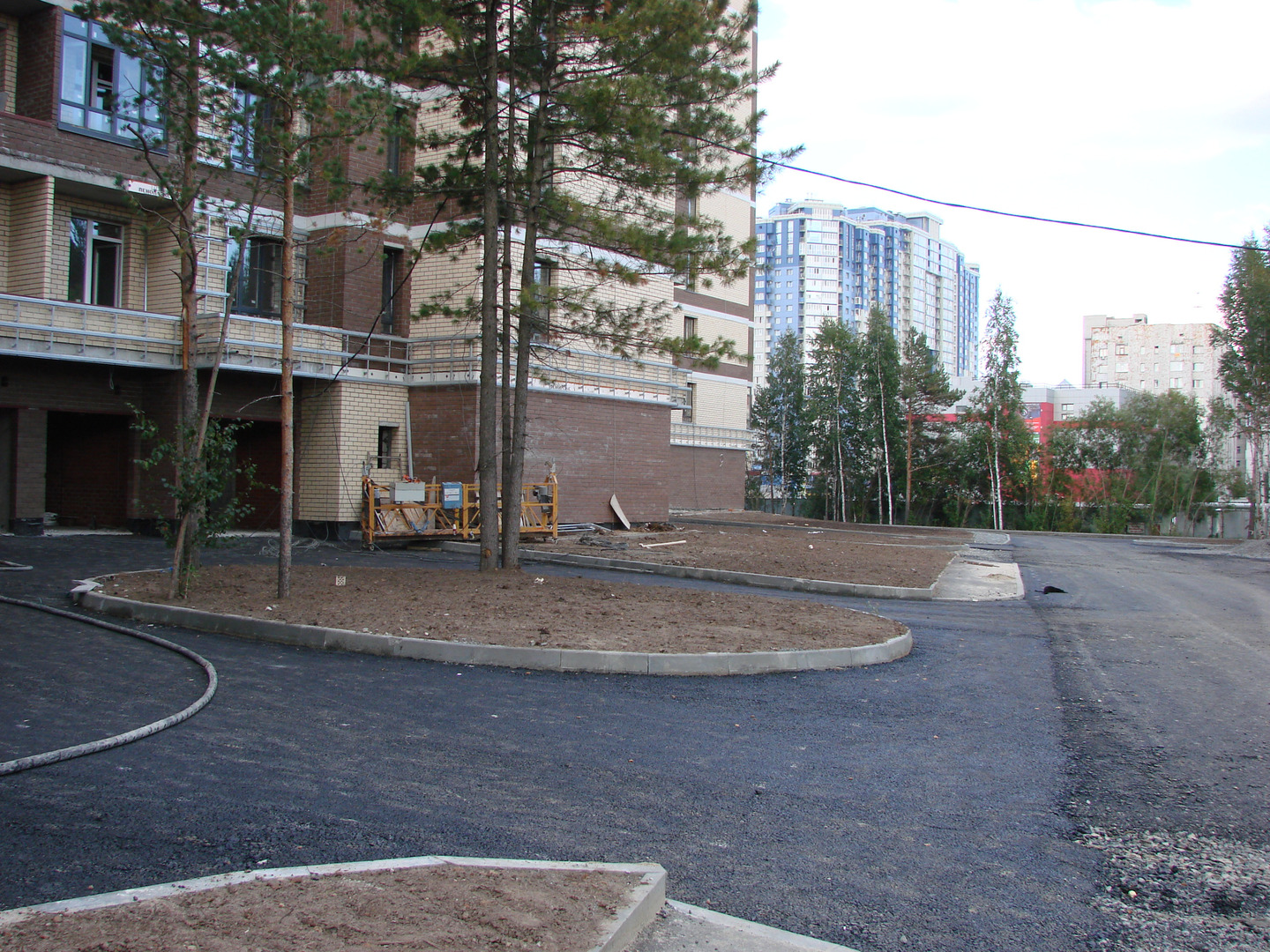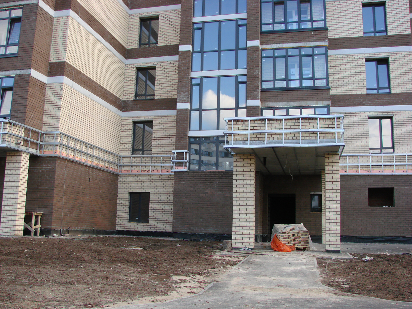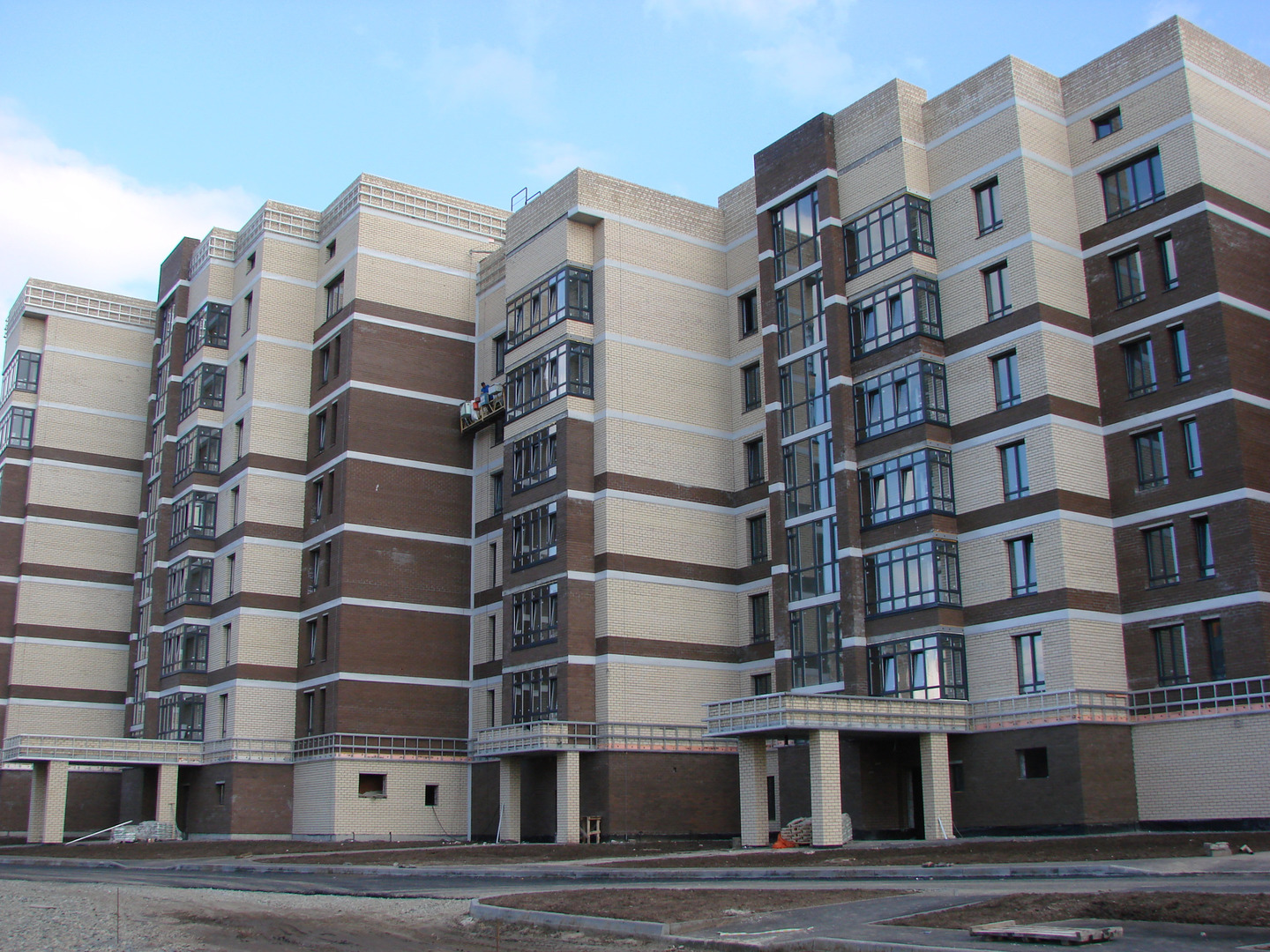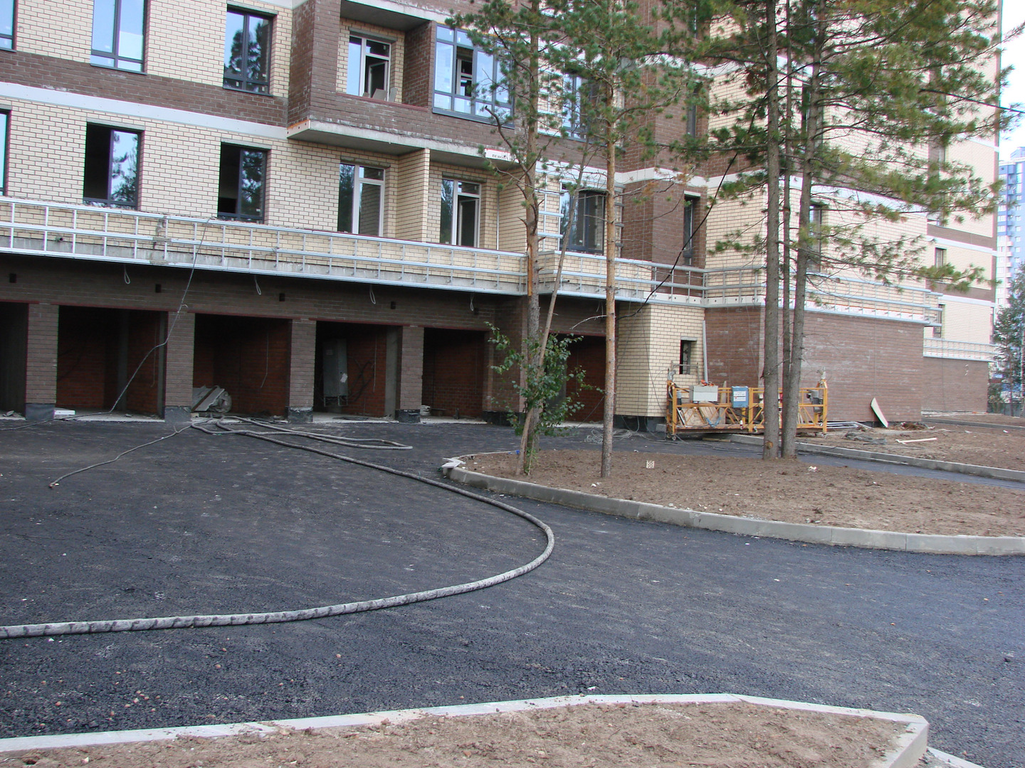Производятся работы по работы по монтажу фасада, благоустройству территории, устройству подъездных путей (укладка асфальта).