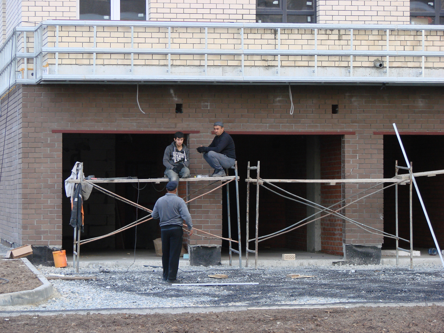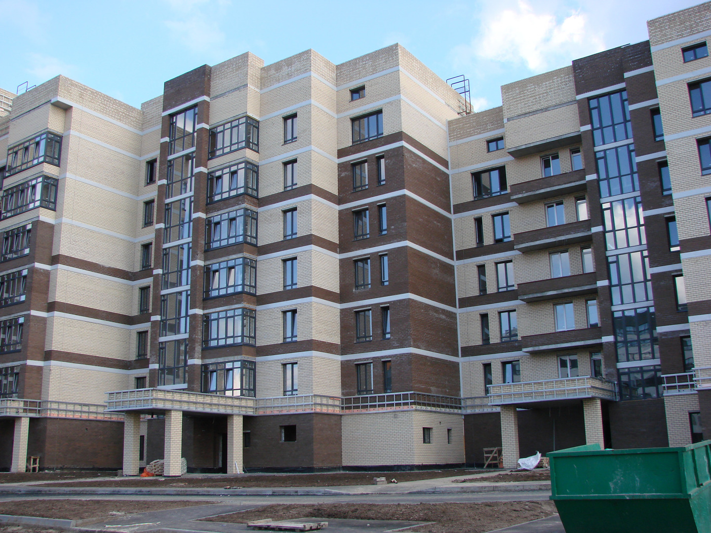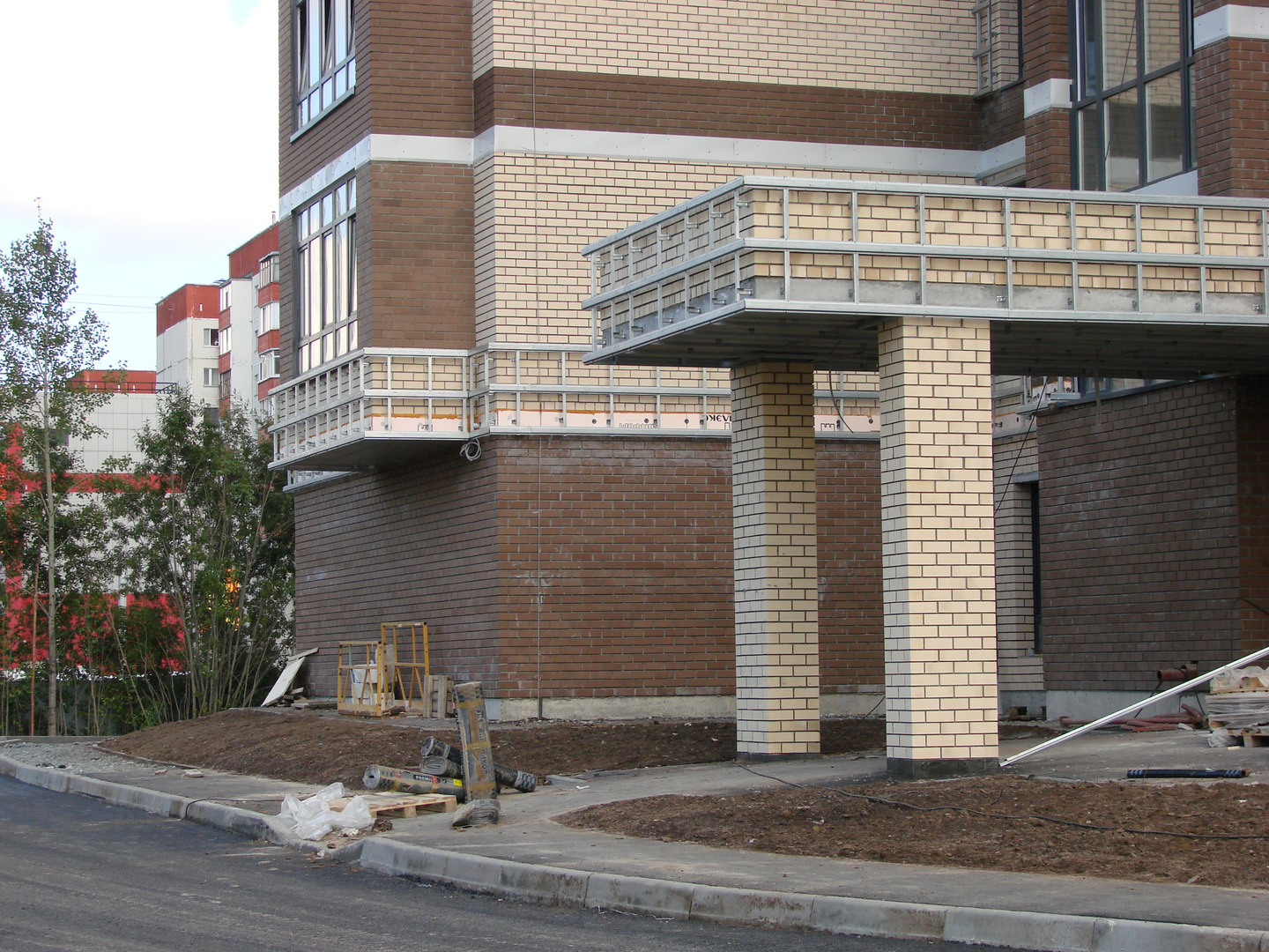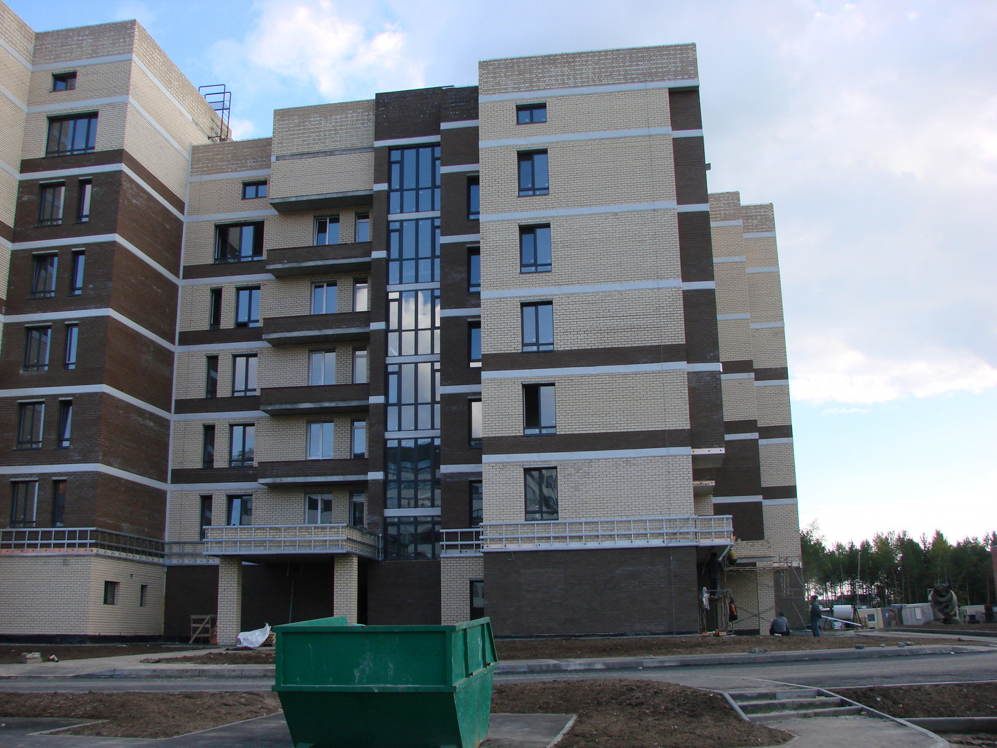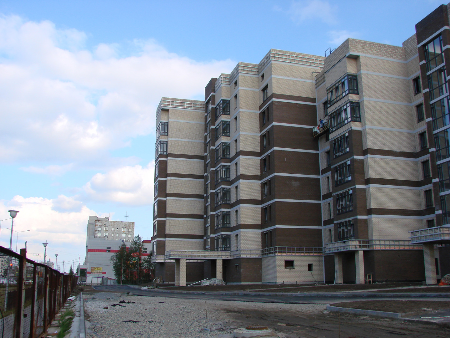 Производятся работы по работы по монтажу фасада, благоустройству территории, устройству подъездных путей (укладка асфальта).