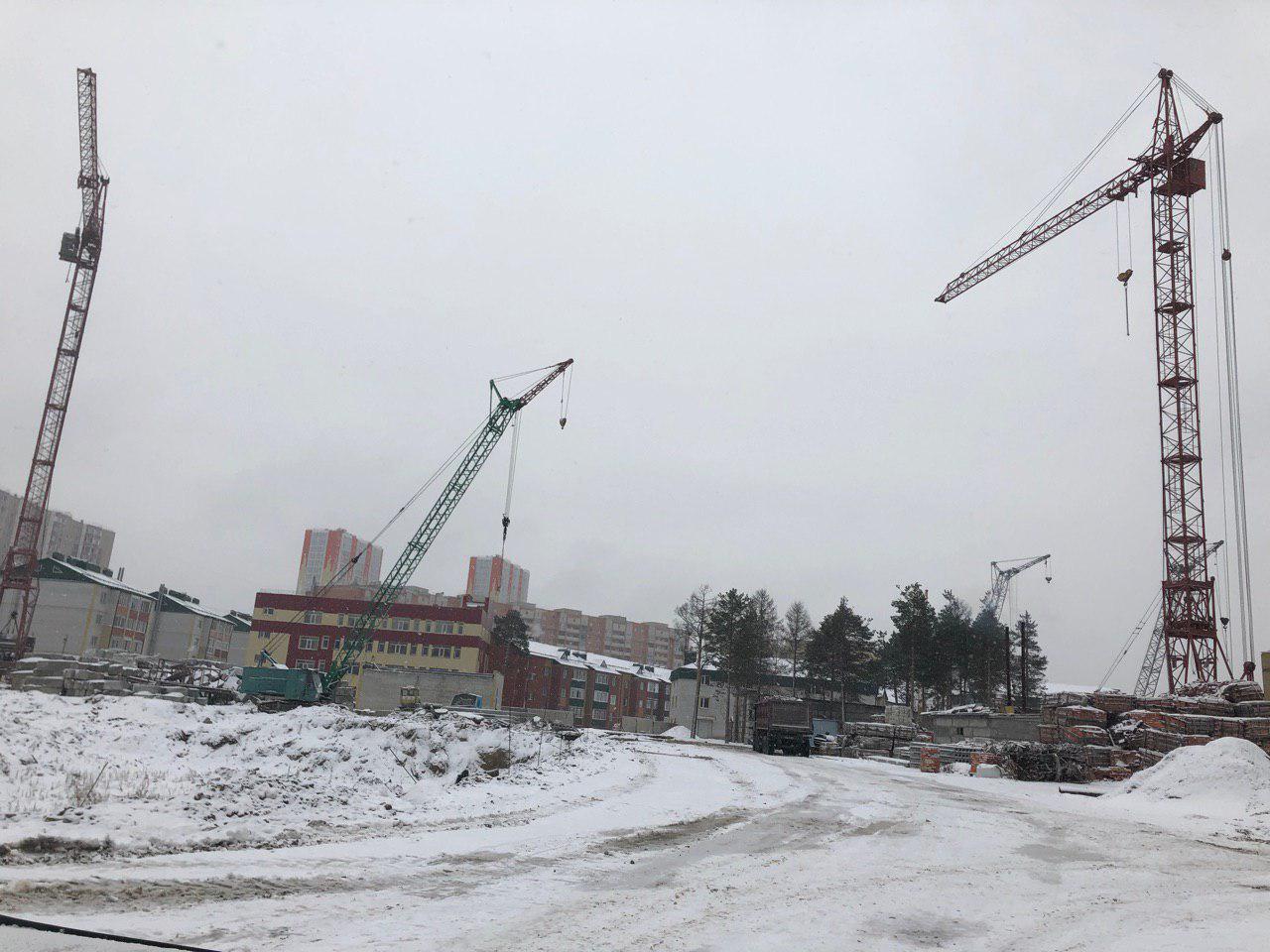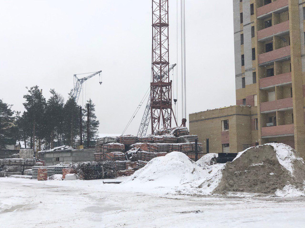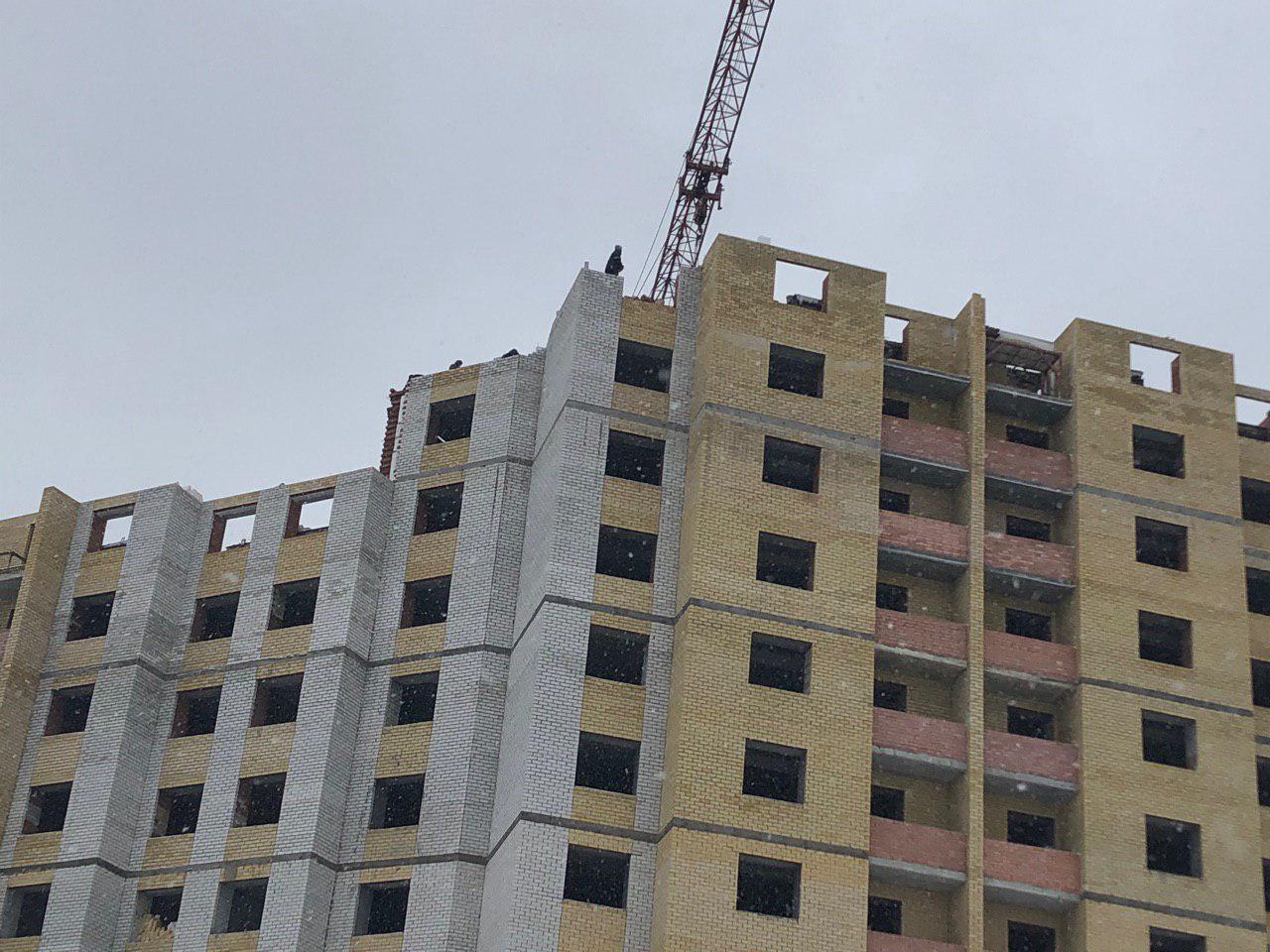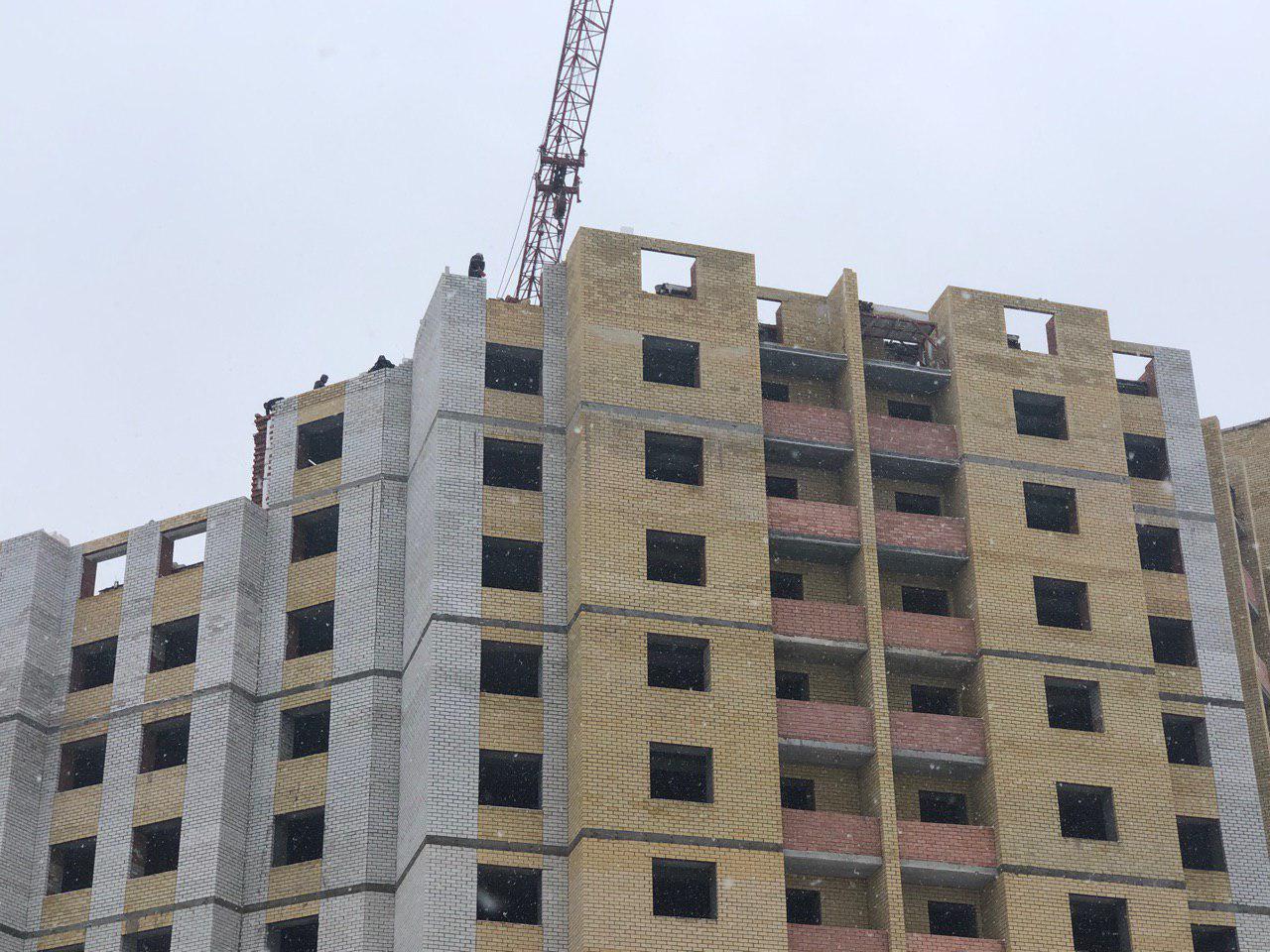 Ведется кладка ограждающих конструкций 9-го этажа секции 8 многоквартирного жилого дома и перегородок. Ведутся работы на кровле. Работают 2 кран, бульдозер, самосвал.