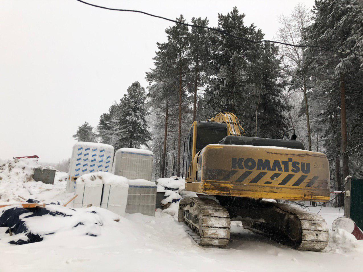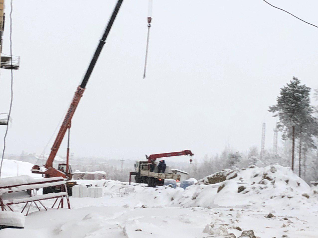 Проводятся работы по проводке электрических сетей внутри жилого дома. Работает автотехника, продолжается завоз строительных материалов.