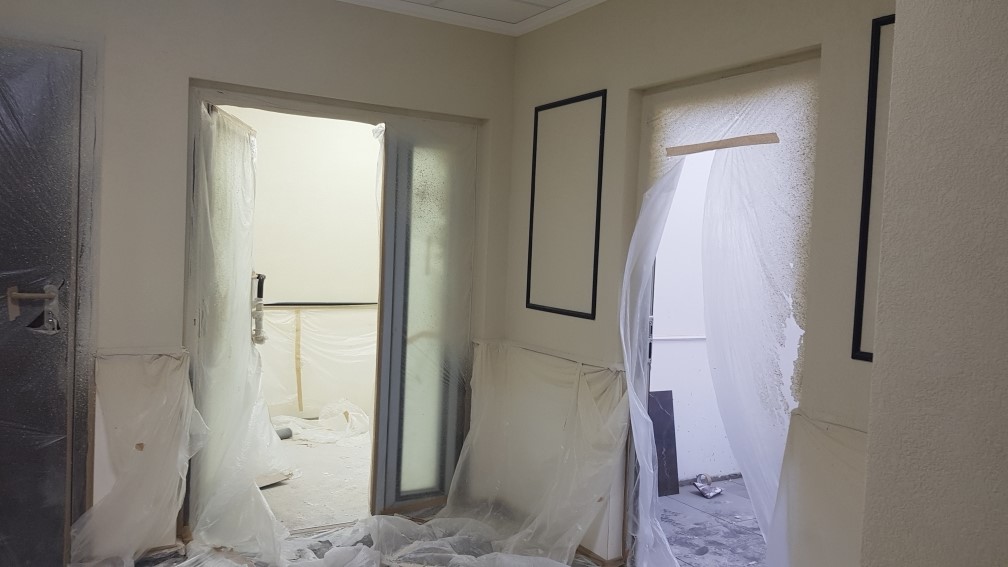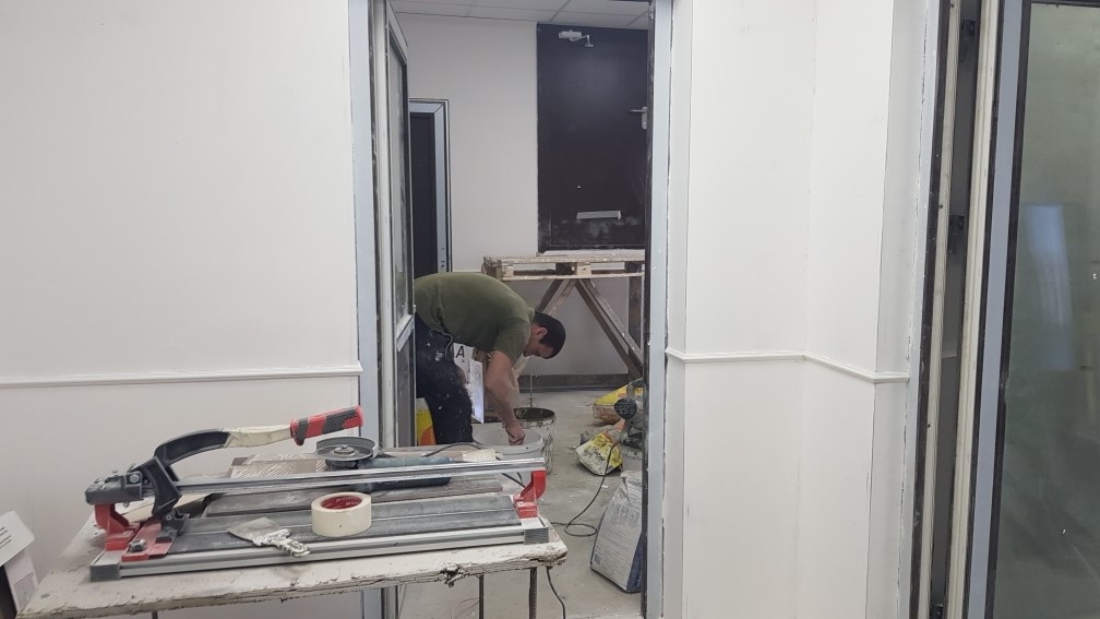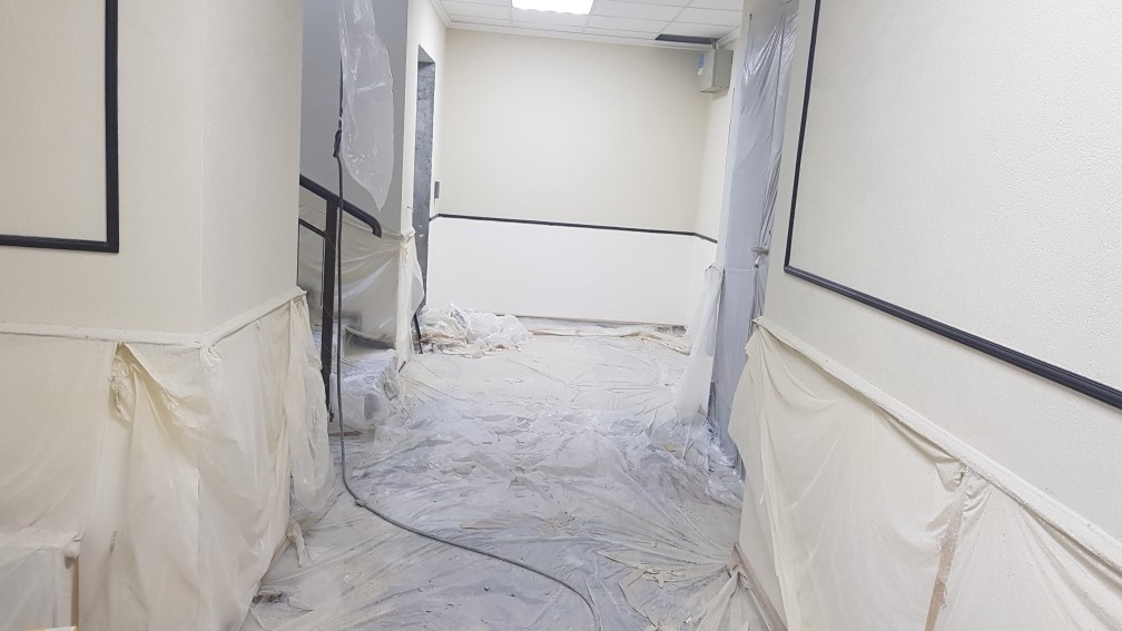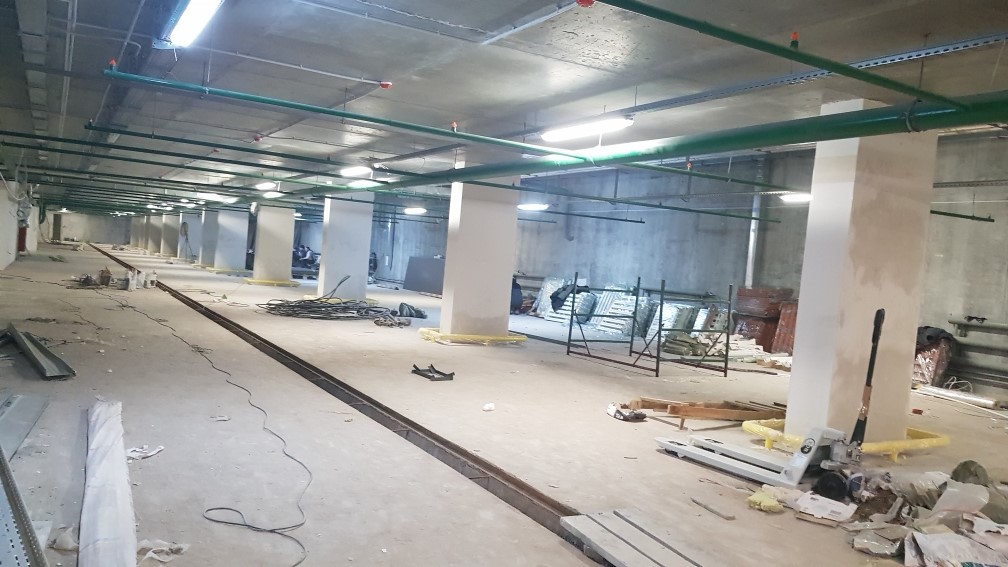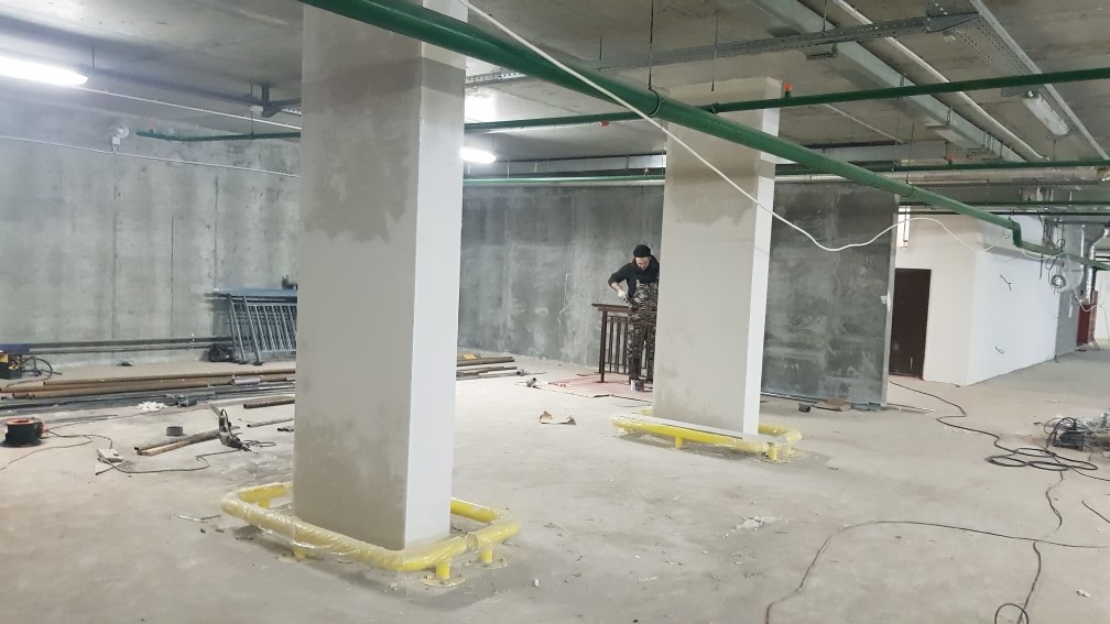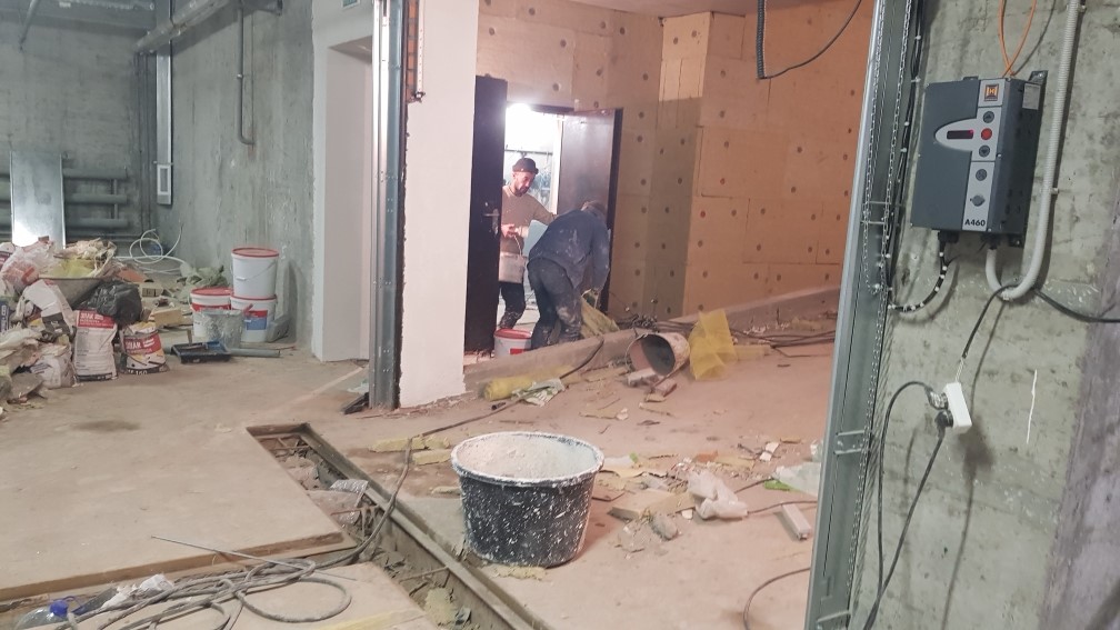 Ведутся отделочные работы в местах общего пользования (декоративная отделка стен, устройство подвесных потолков, укладка плитки).