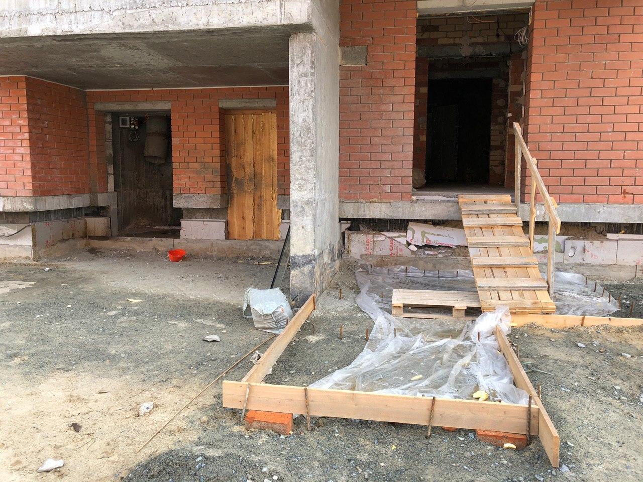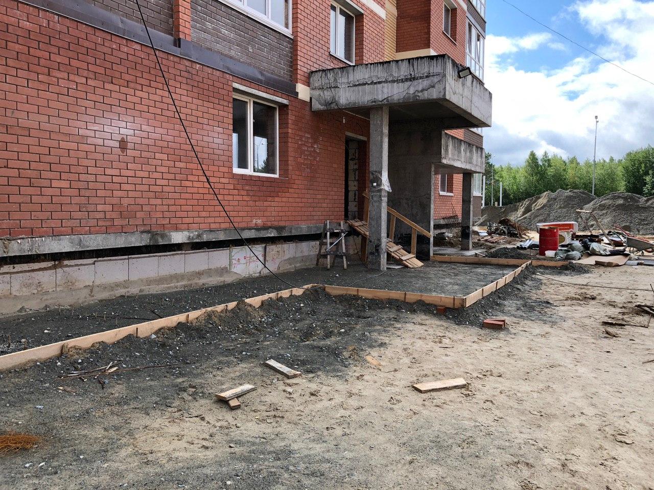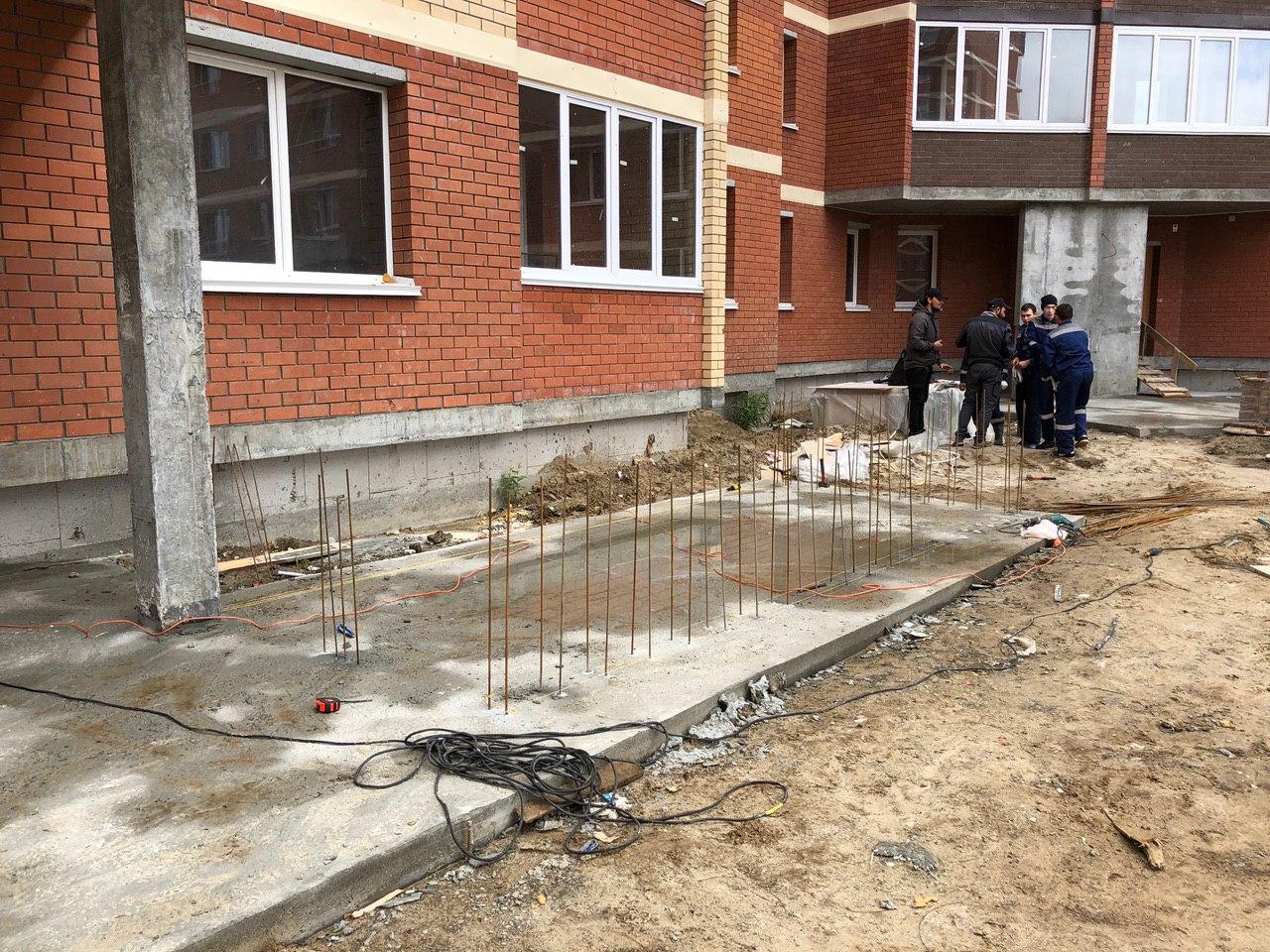 Ведутся работы по устройству входных групп, в том числе устройство подбетонки для крылец.